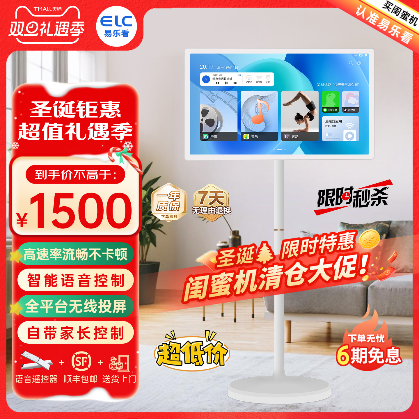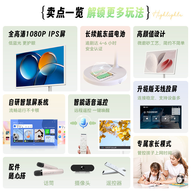 易乐看elc闺蜜机随心屏可移动电视机大平板智慧屏无线投屏直播机触摸健身大屏智能网课语音显示器