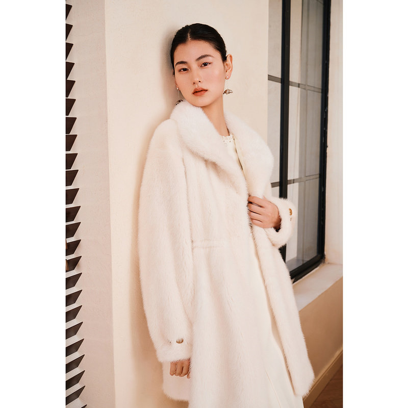 YINER音儿专选2025春季新款轻柔蓬松水貂毛皮长款正肩真皮皮草