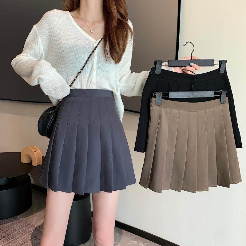 百褶裙女小个子夏季新款高腰显瘦半身裙纯色大码学院风jk短裙套装