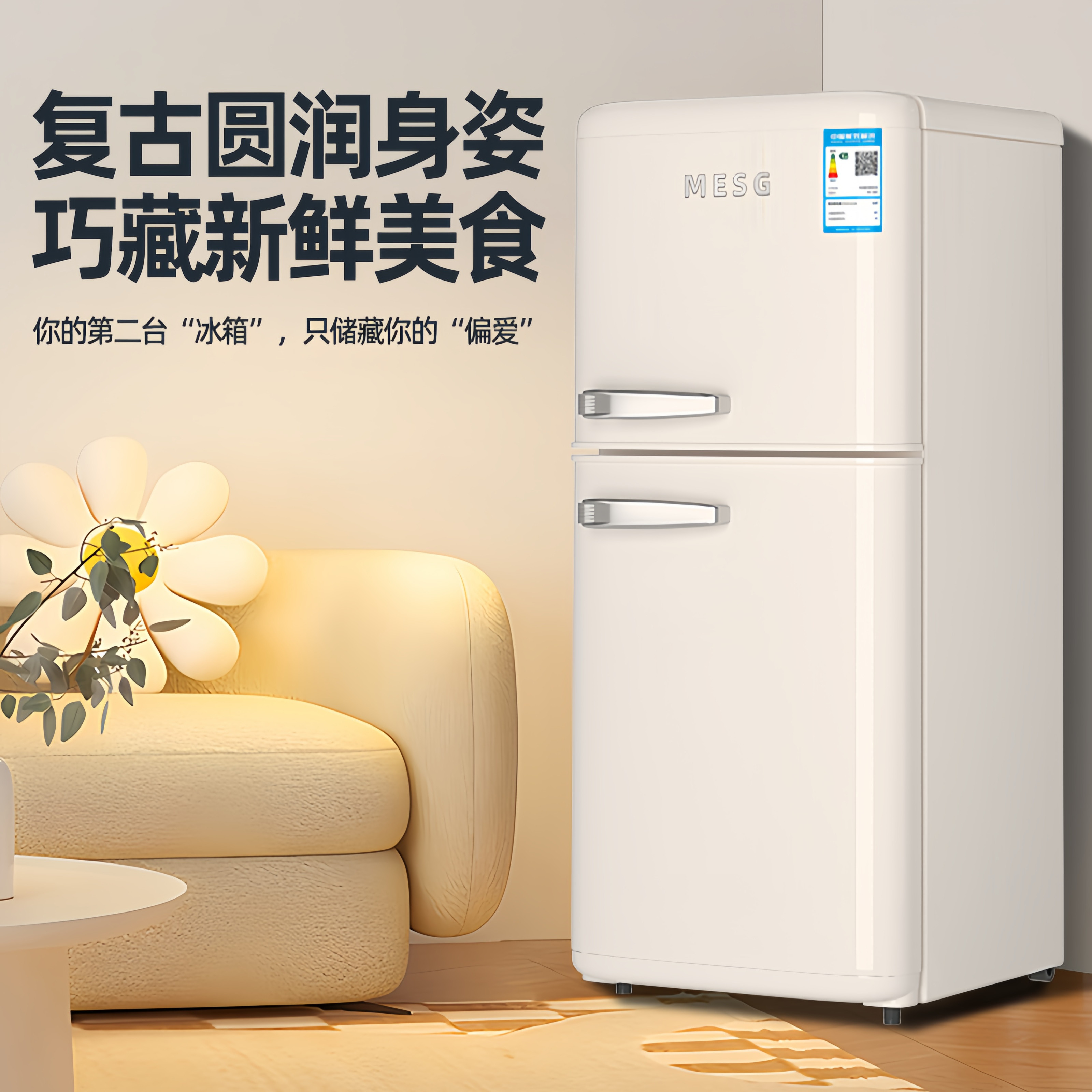 德国MESG复古小冰箱双门冷藏冷冻小户型家用出租房办公室静音省电