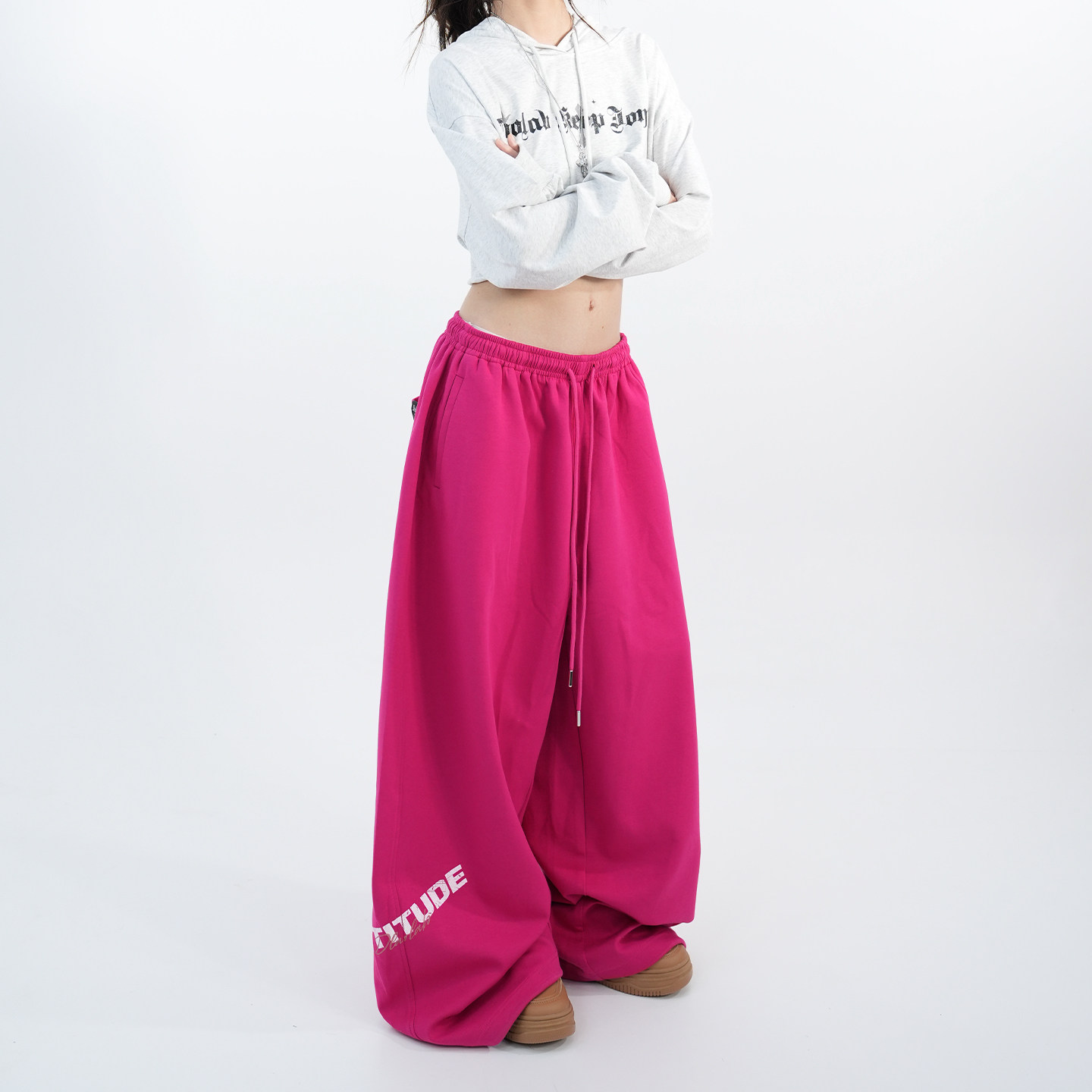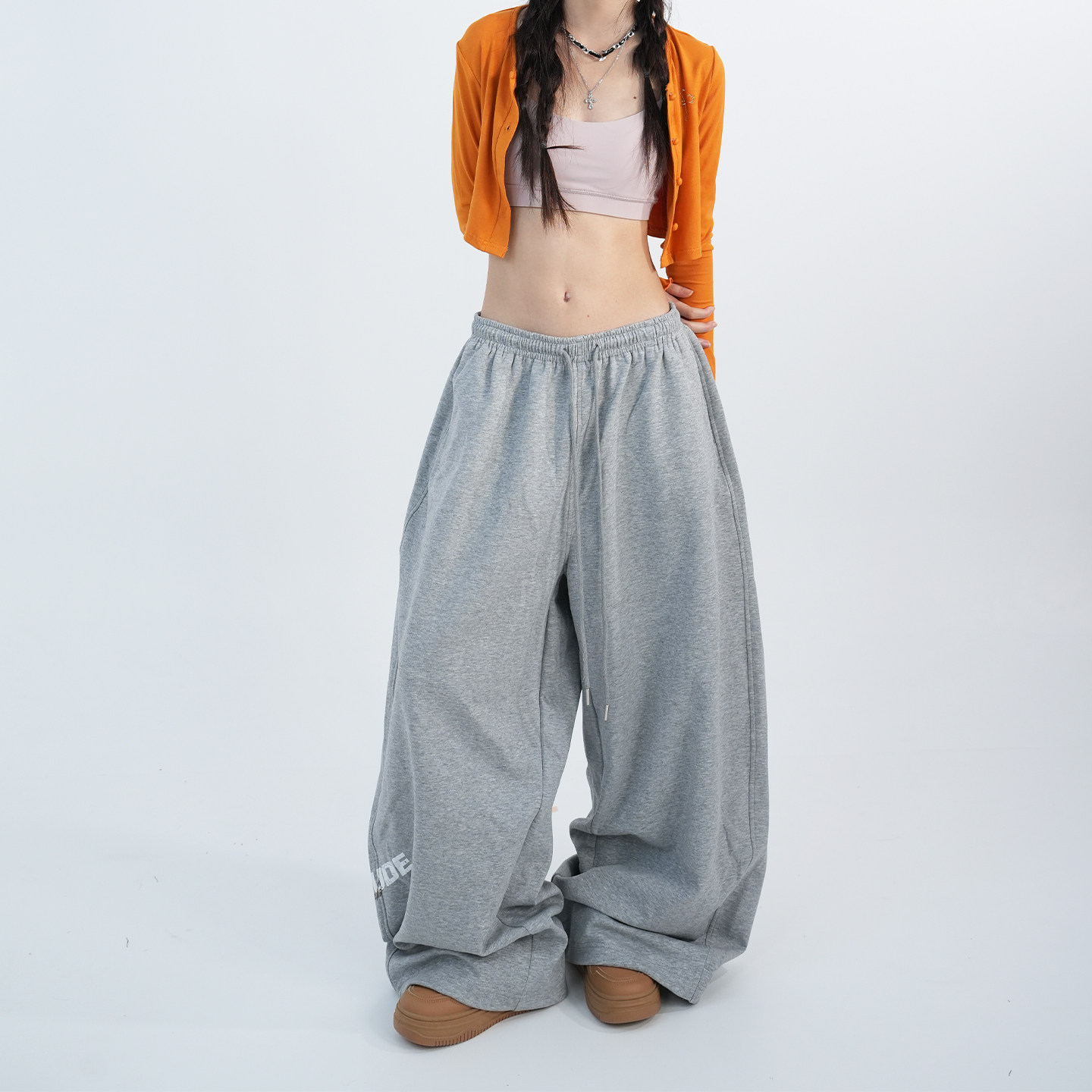 大佬街舞潮牌原创美式jazz辣妹运动卫裤简约显瘦阔腿弯刀裤1275