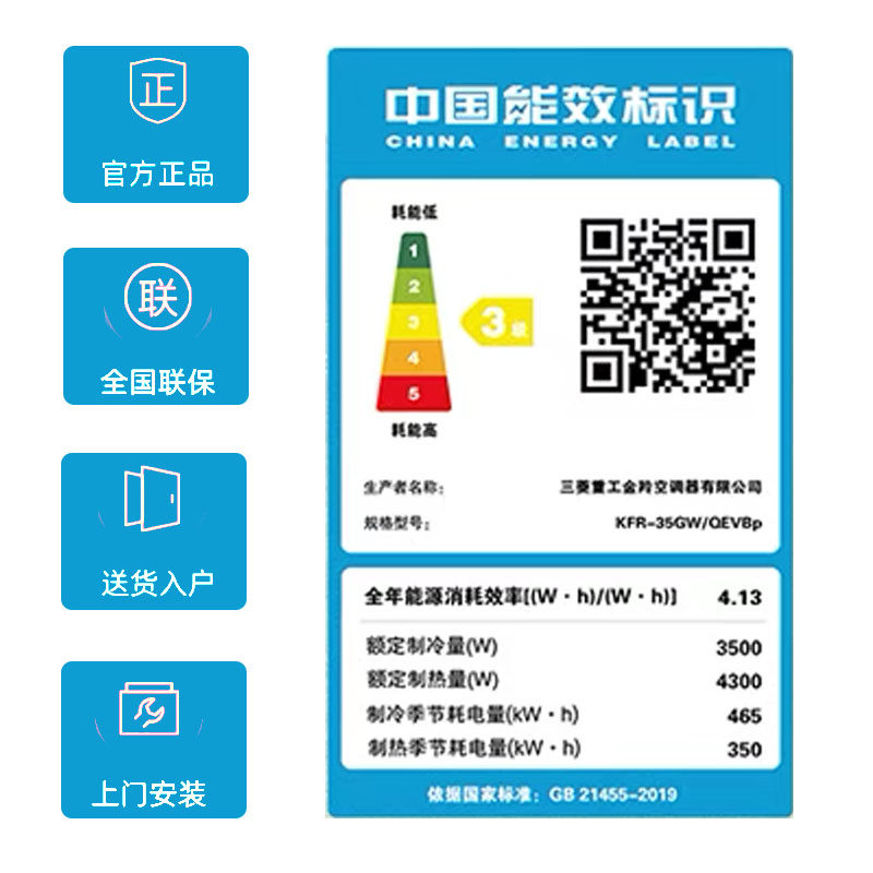 Mitsubishi/三菱重工空调1.5匹挂机冷暖两用变频空调QEV35官方