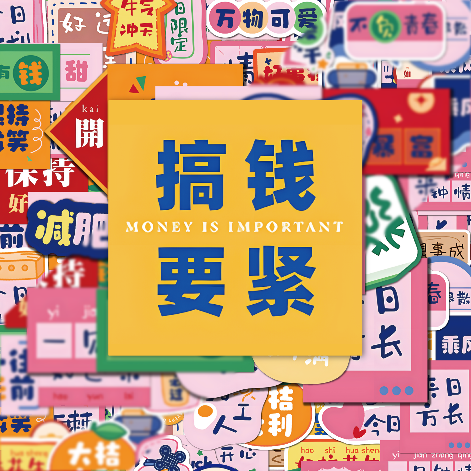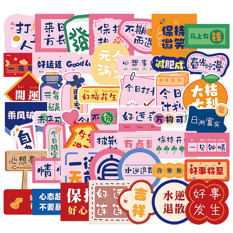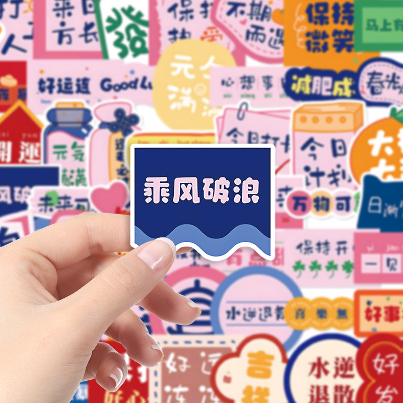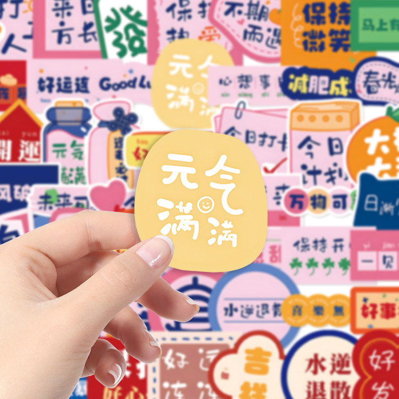 励志中文贴纸多巴胺打包咕卡素材笔记本手机壳桌面遮丑行李箱diy贴画
