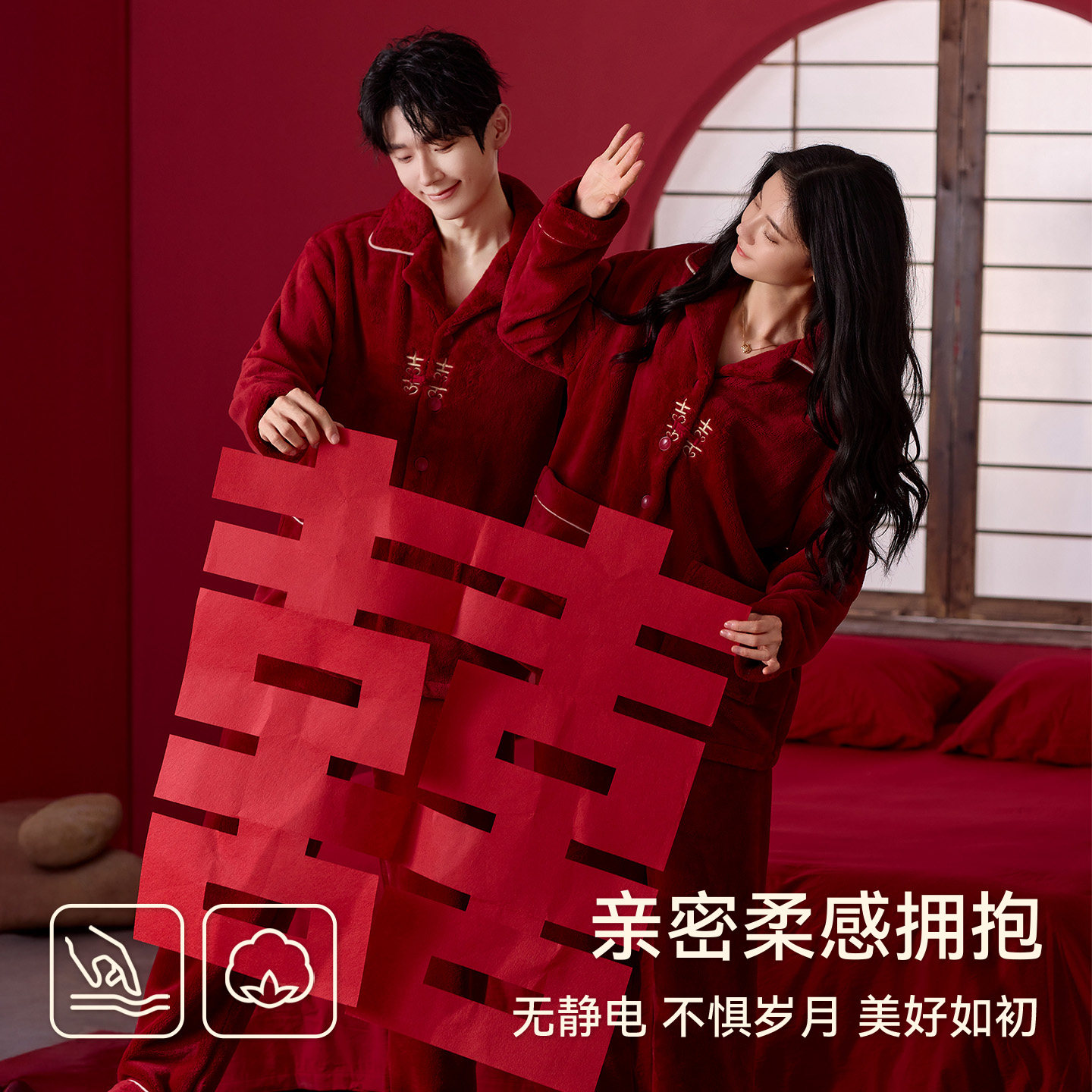 情侣睡衣结婚新婚套装2026马年本命年红色秋冬季珊瑚绒加厚家居服