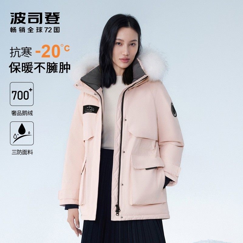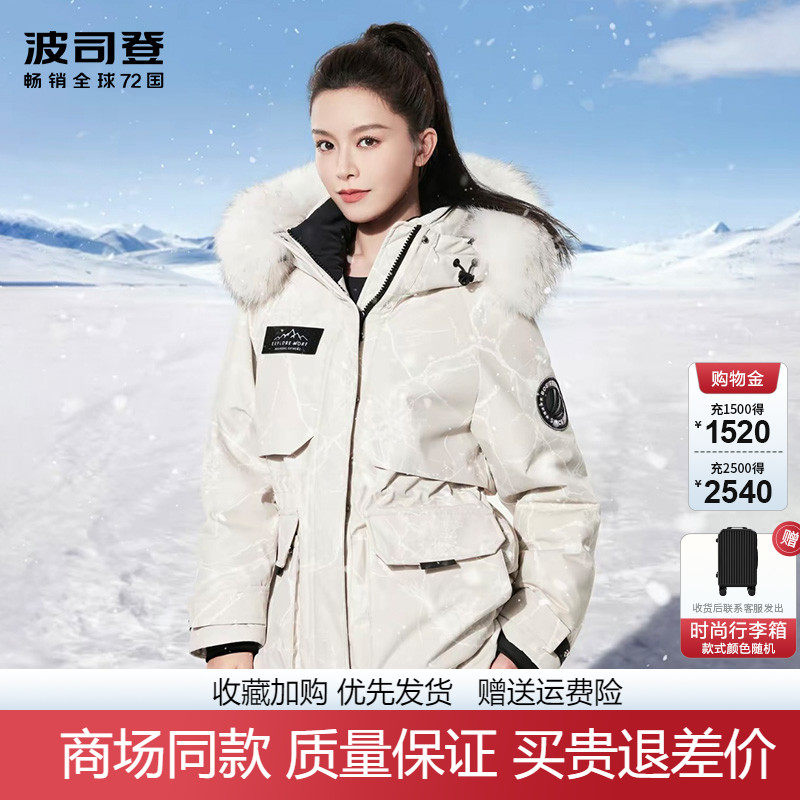 波司登明星同款极寒工装派克女中长款保暖鹅绒加厚收腰白色羽绒服