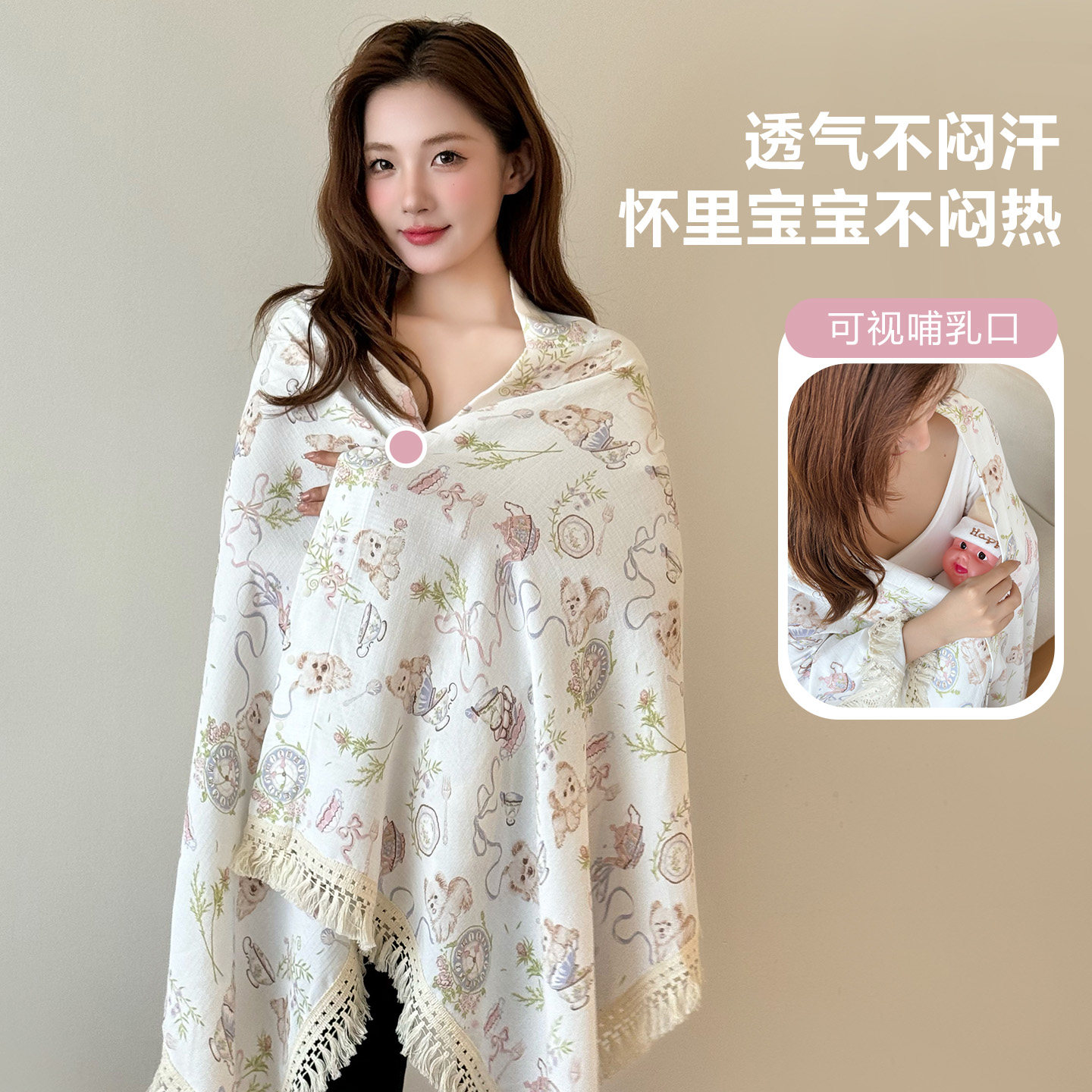 婧麒天竹月子披肩产后夏哺乳巾薄防晒衣外出喂奶遮羞布斗篷遮挡衣