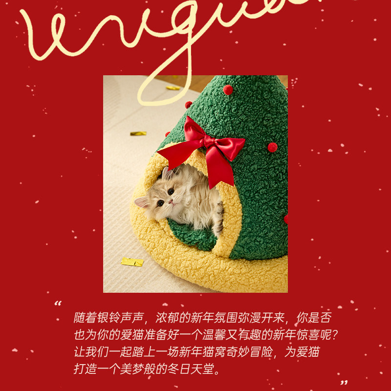 圣诞猫窝冬季保暖封闭式安全感猫帐篷猫咪睡觉用猫房子猫屋猫别墅