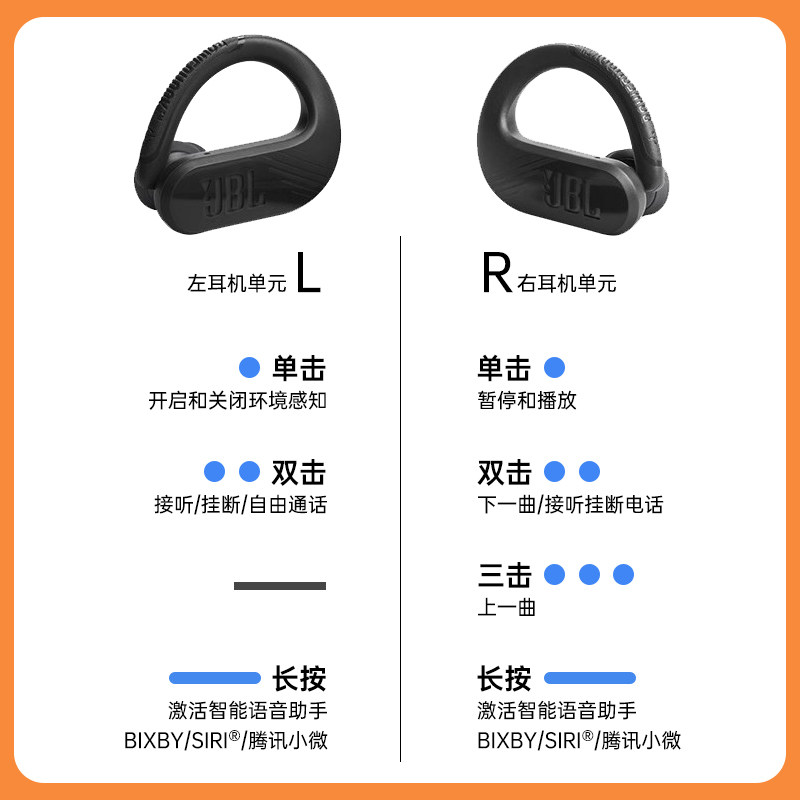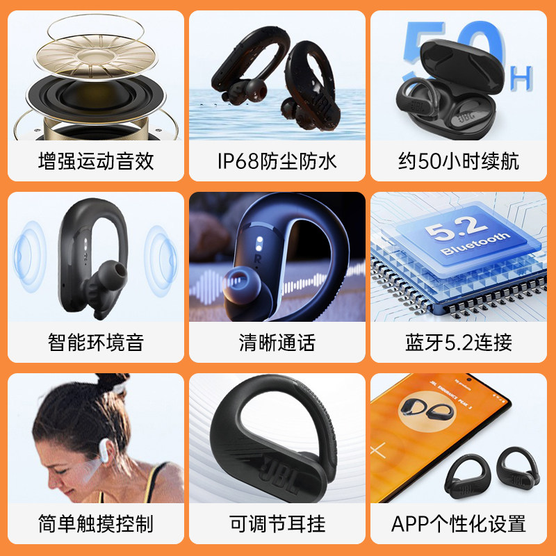 JBL ENDURANCE PEAK3 真无线蓝牙耳机运动2025新款入耳挂耳式耳机