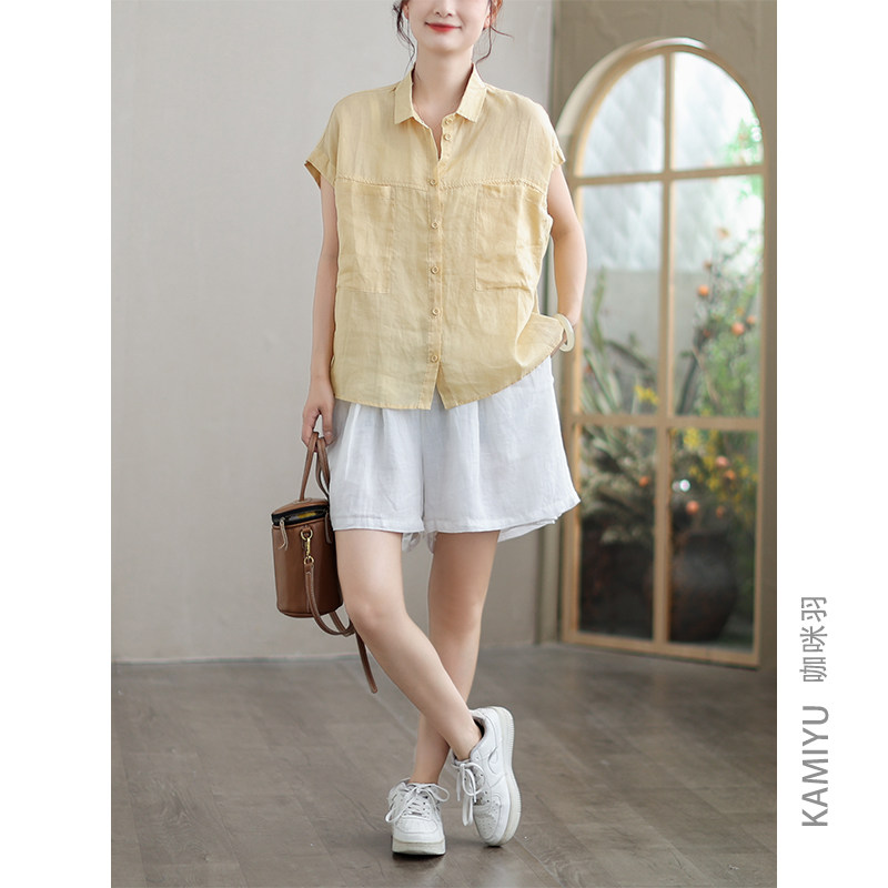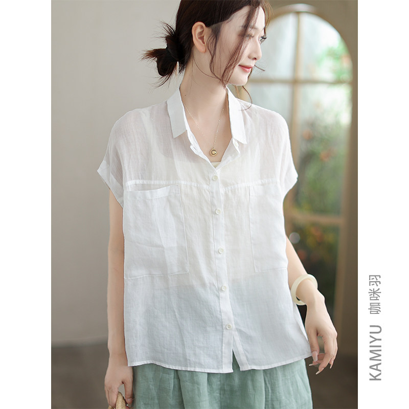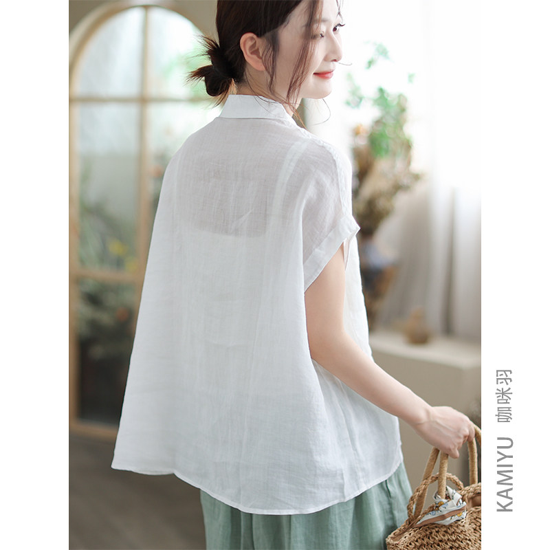 咖咪羽衬衫苎麻夏装新款宽松百搭纯色显瘦文艺原创女装上衣小衫