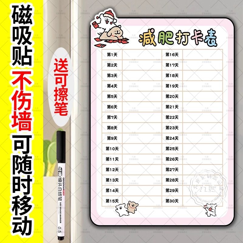 30天瘦身计划磁吸记录表减肥打卡神器可擦写减肥打卡记录表自我记录体重计划表60天90天自律瘦身减肥计划表贴