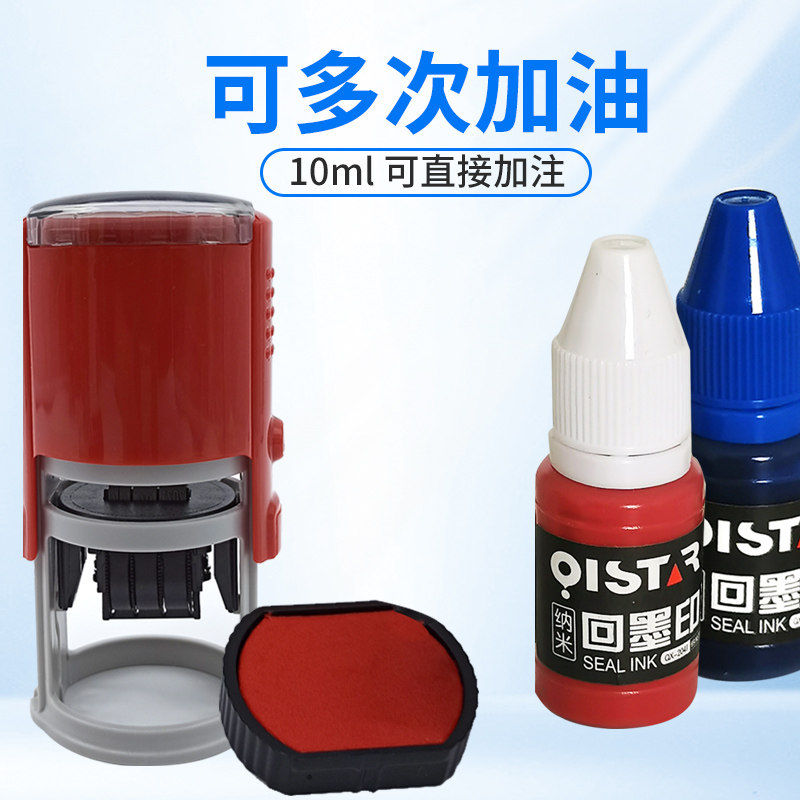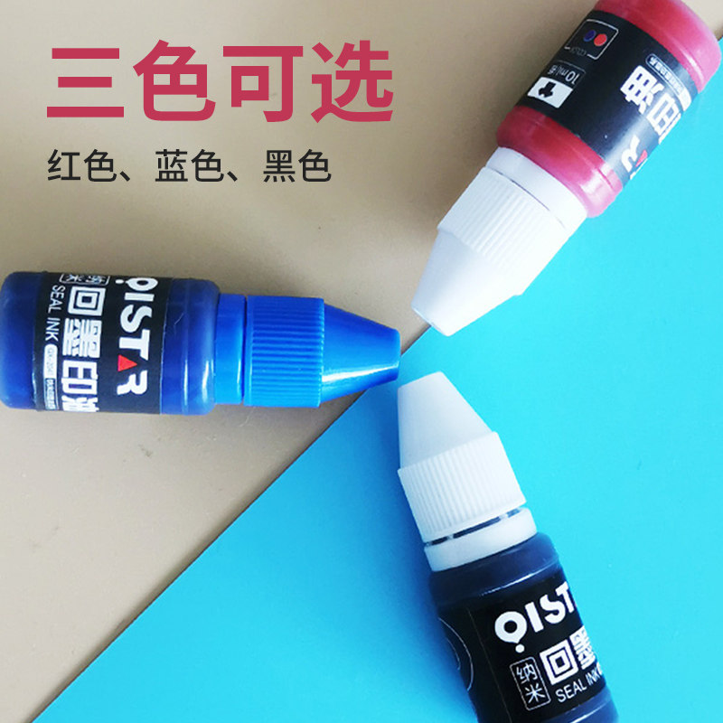祺星回墨印油水性印章专用印油墨翻斗翻印章转办公财务红蓝黑色10ML印油红色快干纳米回墨印油印章油