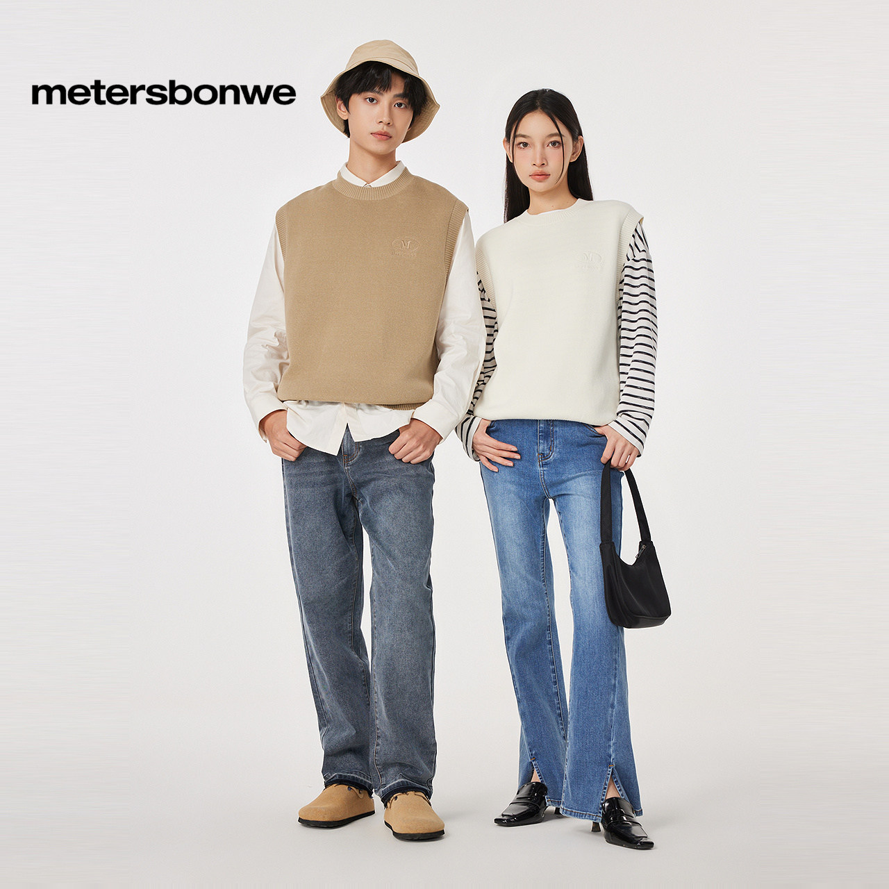 美特斯邦威男女同款秋冬季新款时尚舒适百搭舒适圆领套头纯色马甲