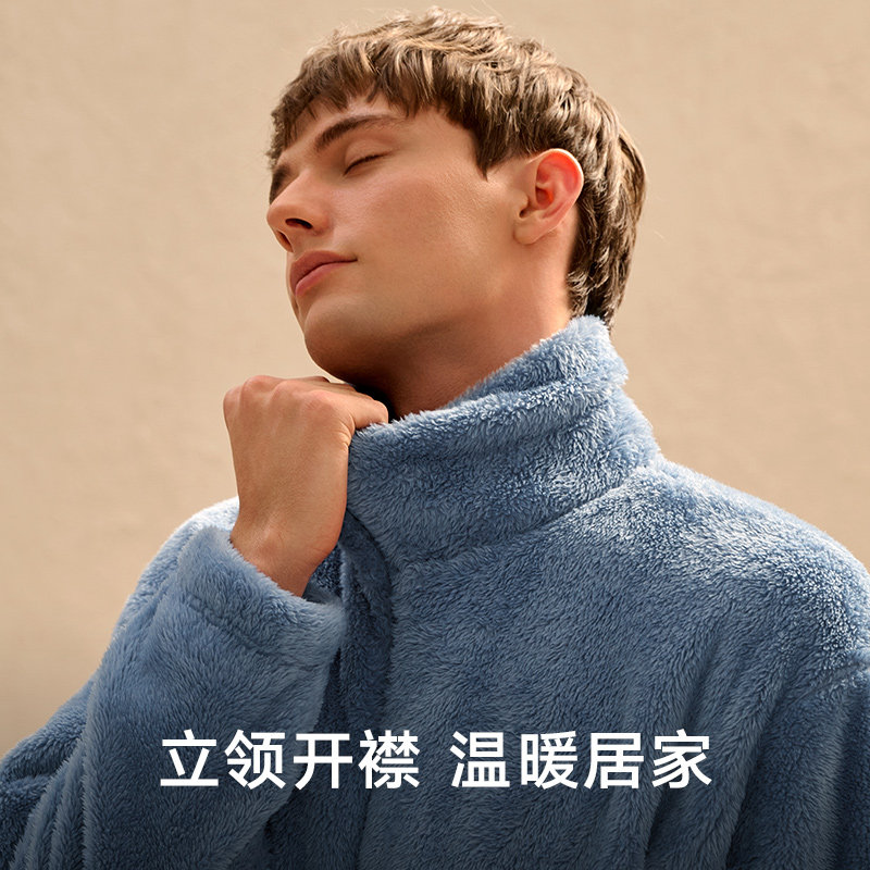曼妮芬加厚男士睡衣立领开襟长袖长裤套装舒适家居服合体起居服