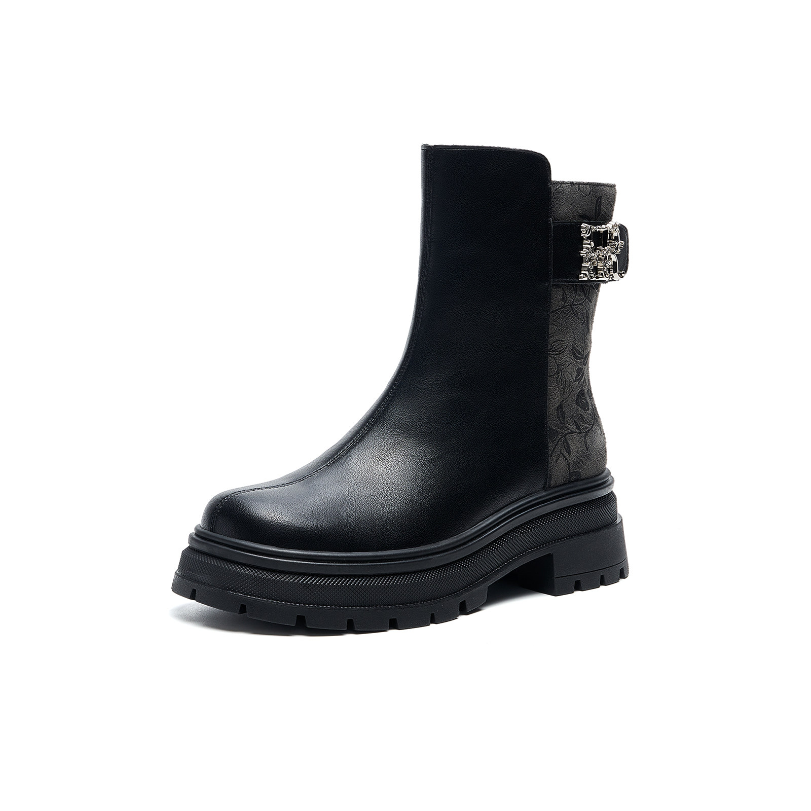 天美意复古英伦风厚底加绒马丁靴女鞋子冬新款休闲短靴皮靴时装靴