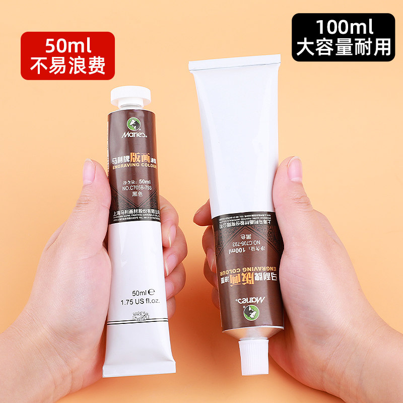 马利牌版画油墨颜料50ml彩色印油性版画工具专用画画100ml6色规格油墨胶板滚筒雕刻工具