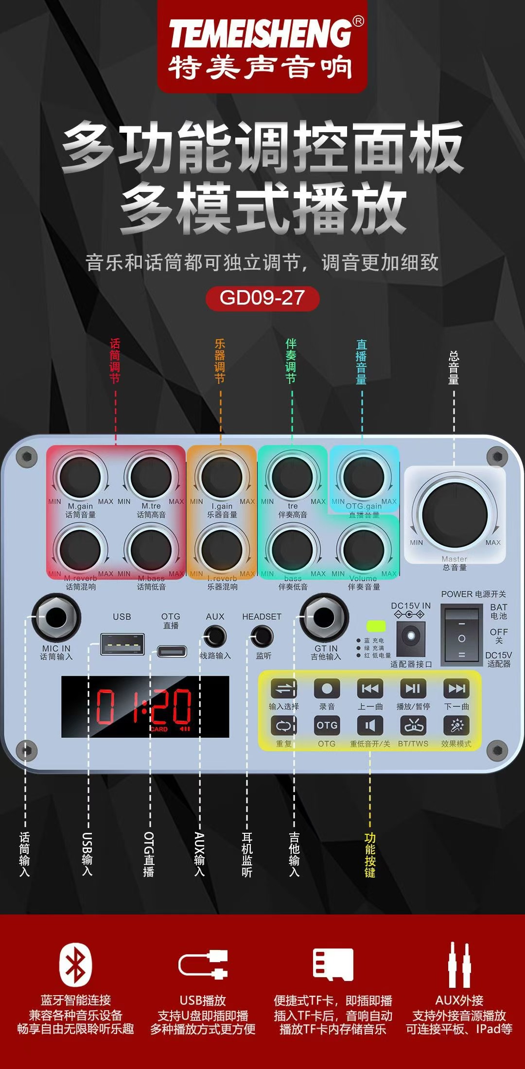 特美声户外背包音响GD09-27便携式乐器直播蓝牙音箱小体积大功率