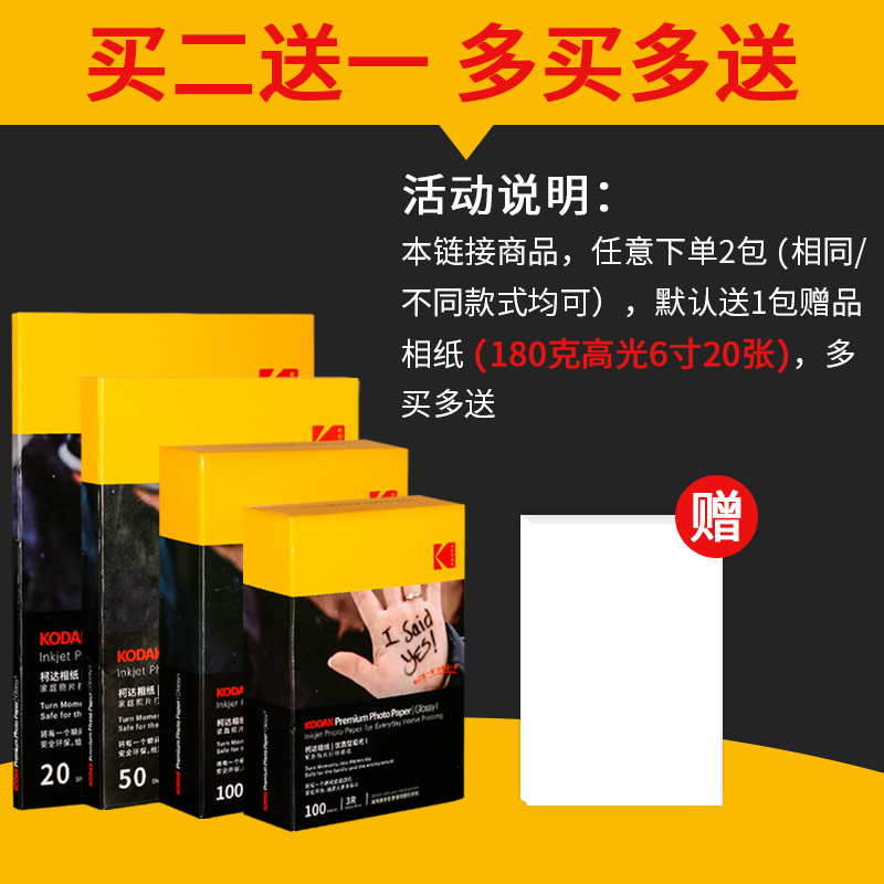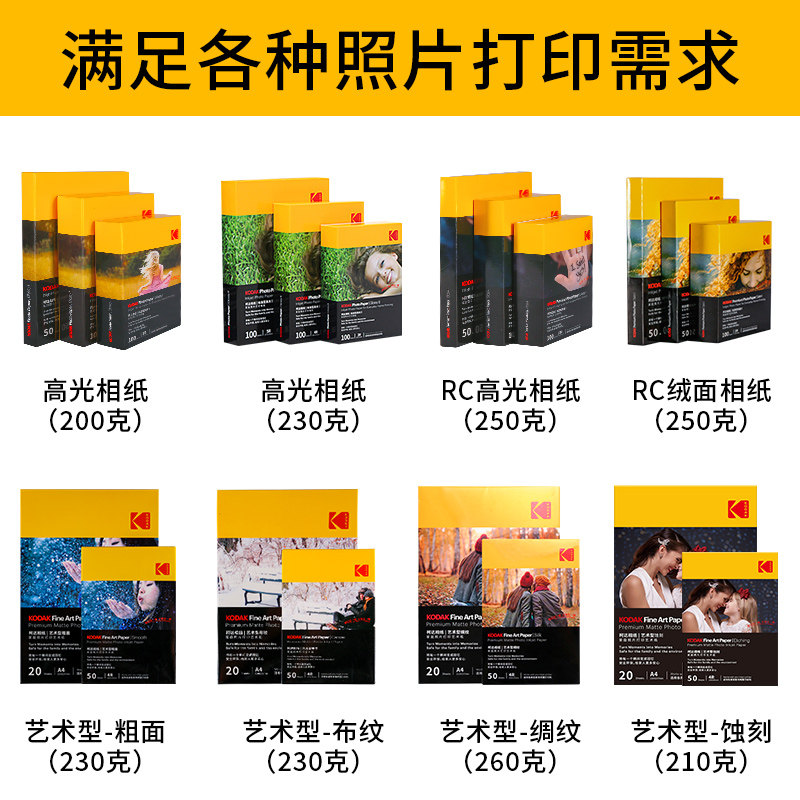 柯达家用型高光绒面RC相纸5寸6寸7寸A4彩色喷墨打印机相片纸照片纸打印专用像纸粗面照相纸防刮擦摄影纸8寸A3