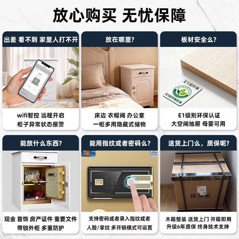 顺丰德邦 床头柜带保险箱 一柜多用远程报警