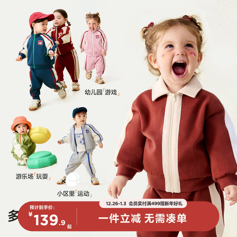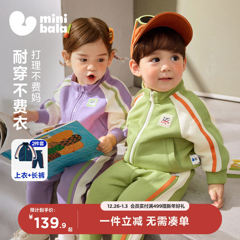 [4级抗起球]迷你巴拉巴拉套装男女童儿童运动宝宝棒球服外套长裤
