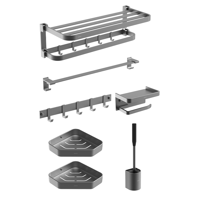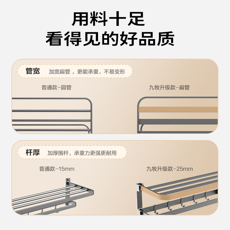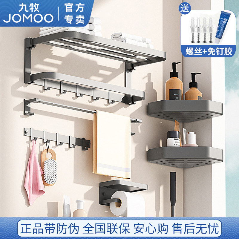 九牧浴巾架免打孔卫生间折叠置物架子枪灰色太空铝五金挂件收纳架