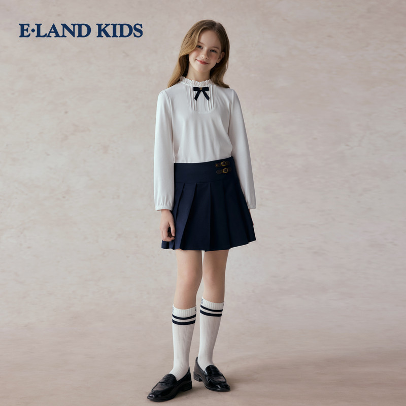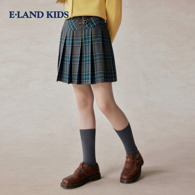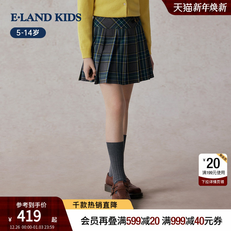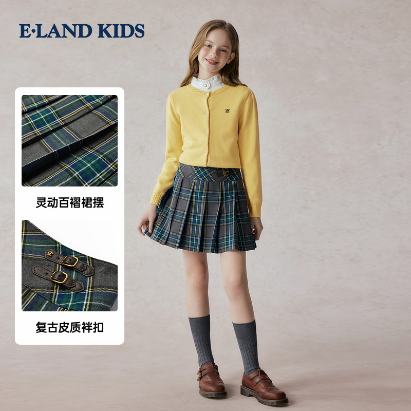 eland kids衣恋童装女童百褶裙2025秋季新品英伦半身裙子