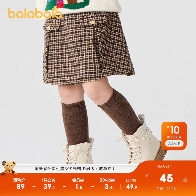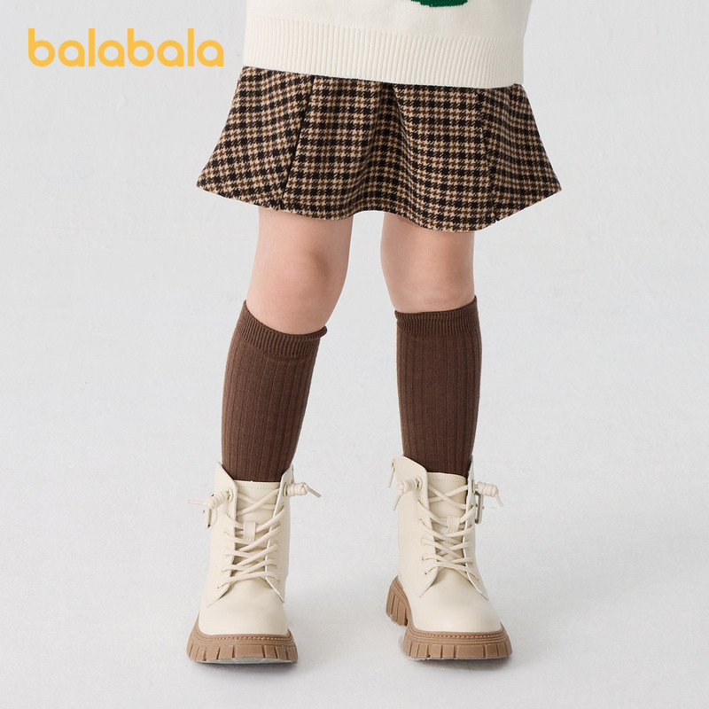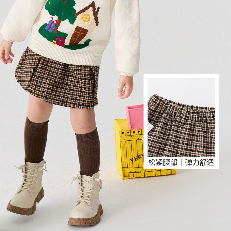 巴拉巴拉童装女童裙子儿童毛呢格子裙秋冬复古美拉德短裙洋气时尚