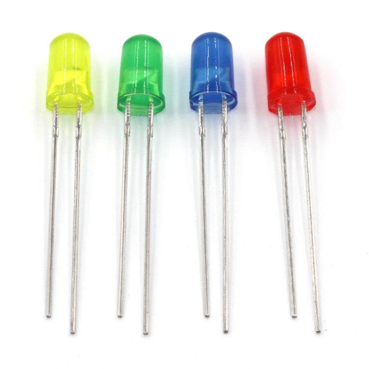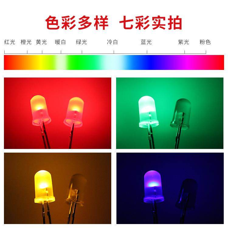 好莱光直插式LED发光二极管F5/5MM圆头带色单闪红绿蓝黄高亮灯珠