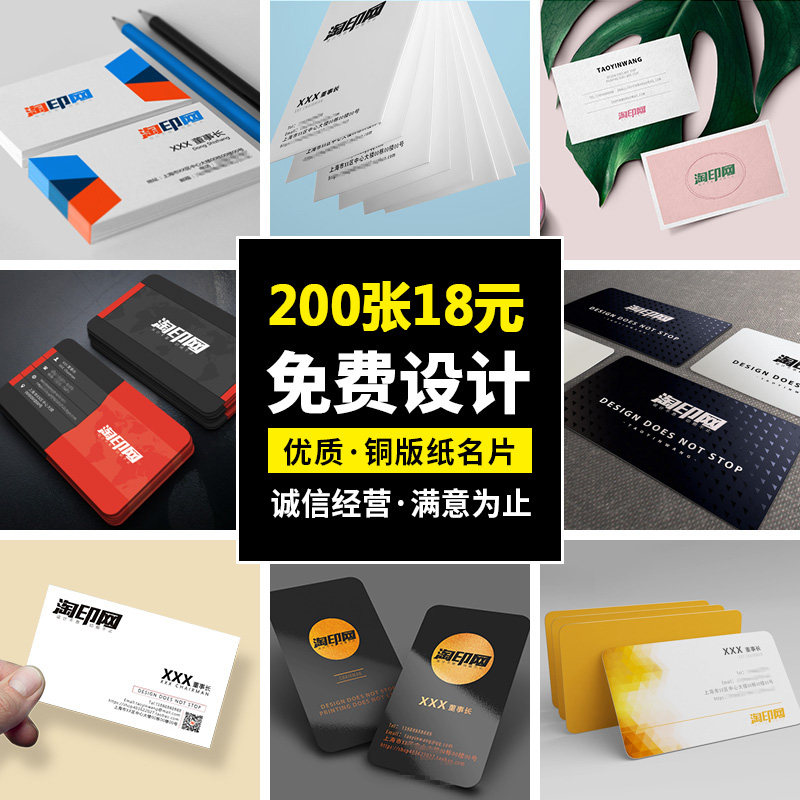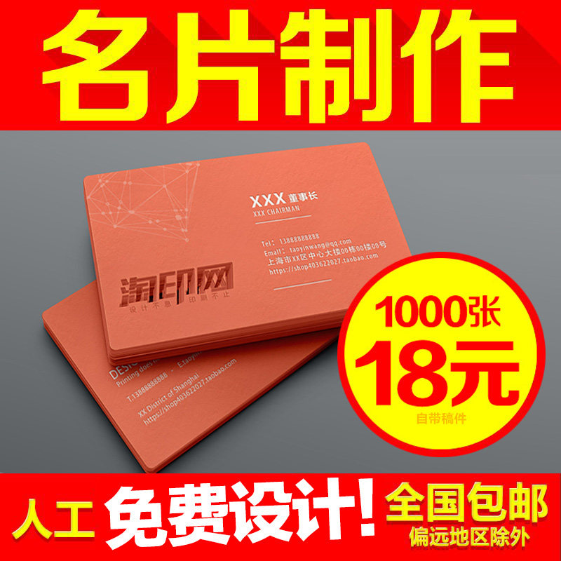 免费设计名片制作铜版纸商务塑料名片彩色印刷定制卡片订定做包邮