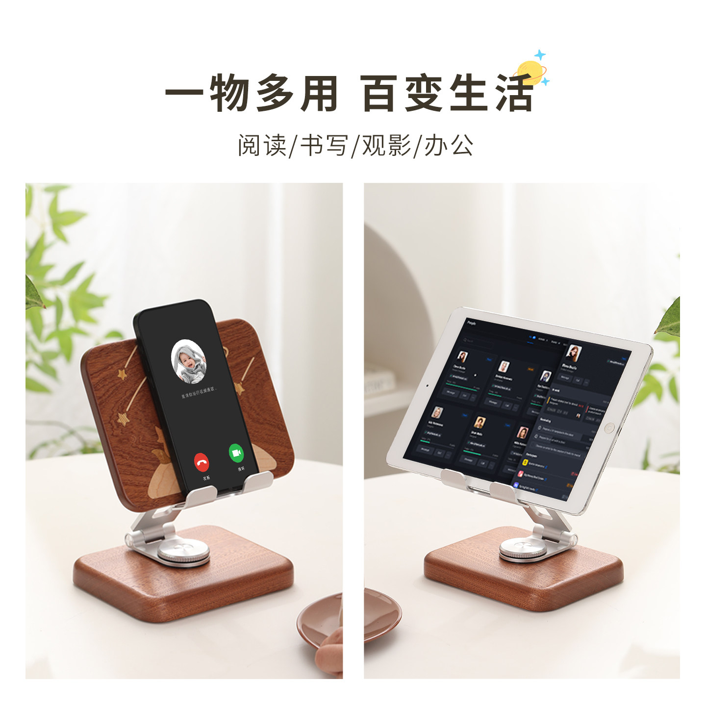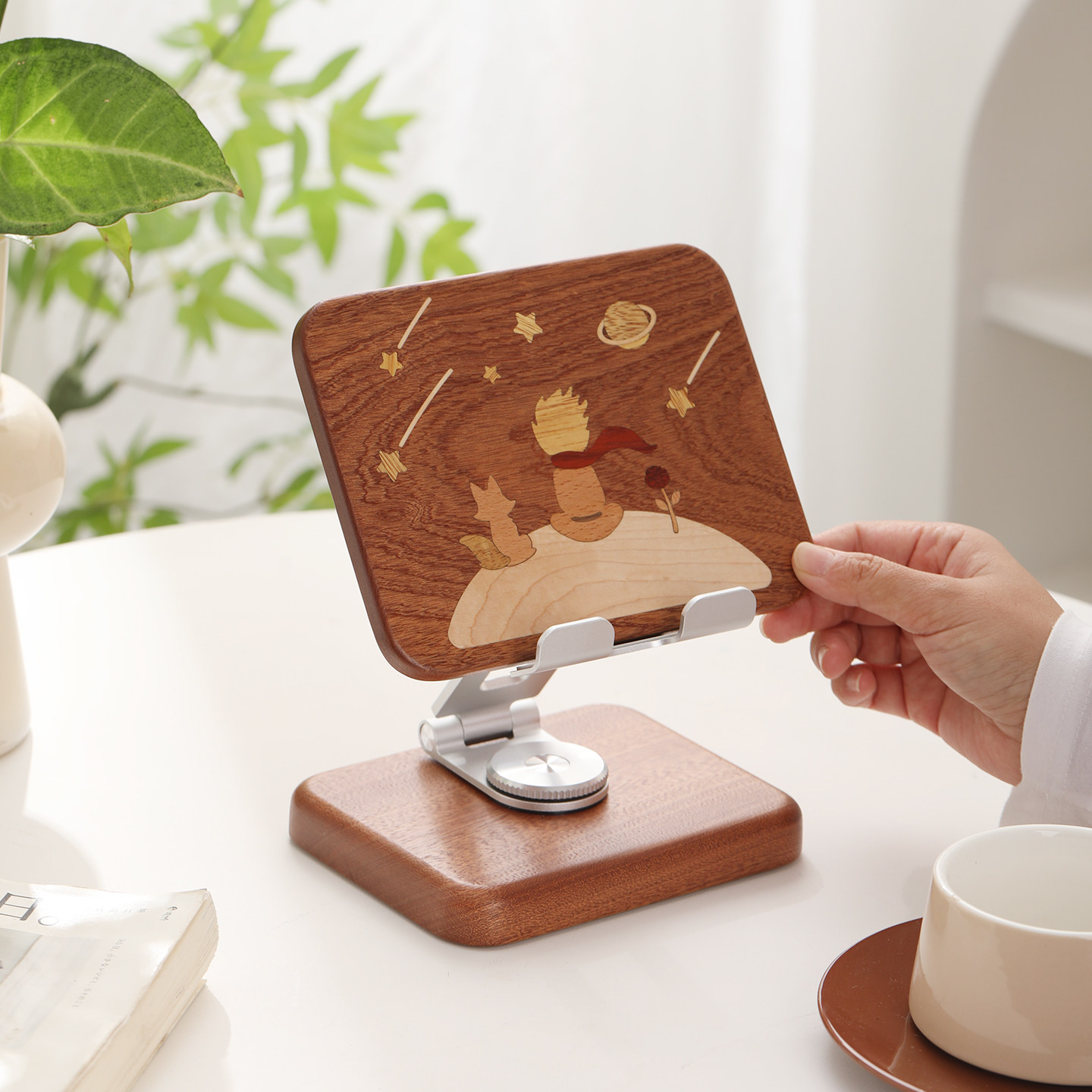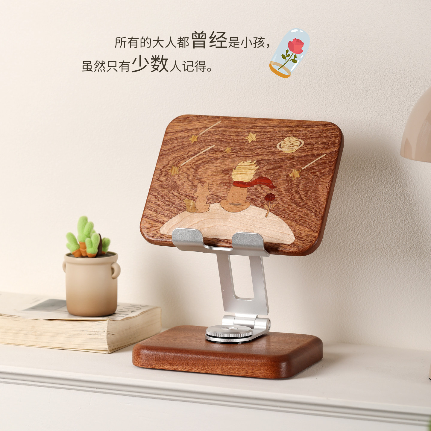 小王子实木手机支架平板创意卡通可爱桌面家用iPad支撑架木质手机座懒人床头可升降可旋转可折叠追剧直播