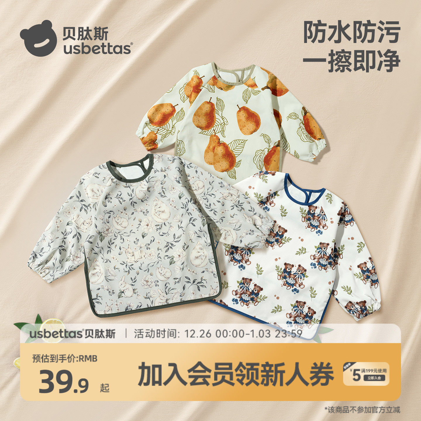 贝肽斯宝宝吃饭围兜防水防脏幼儿园围裙婴儿辅食饭兜儿童罩衣S