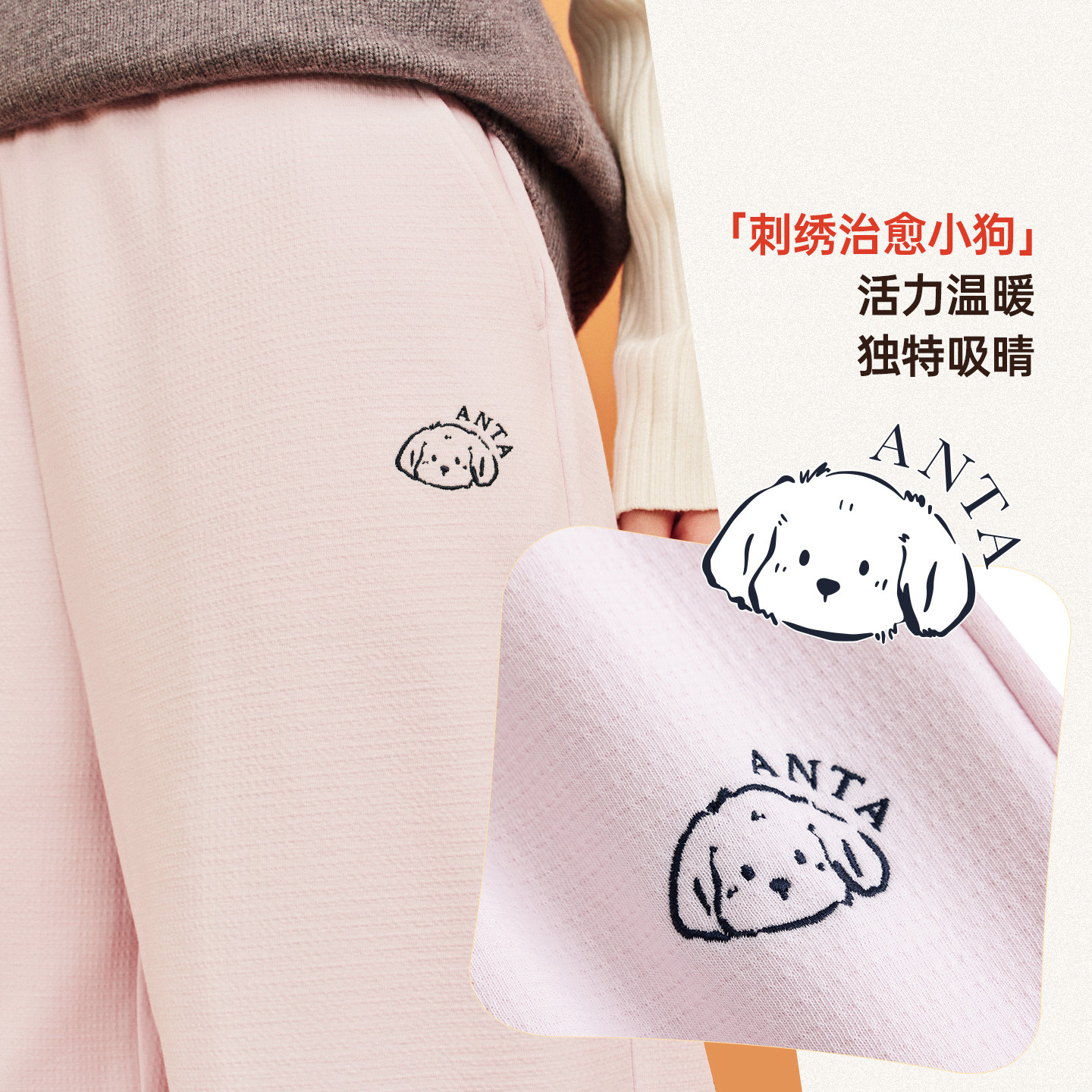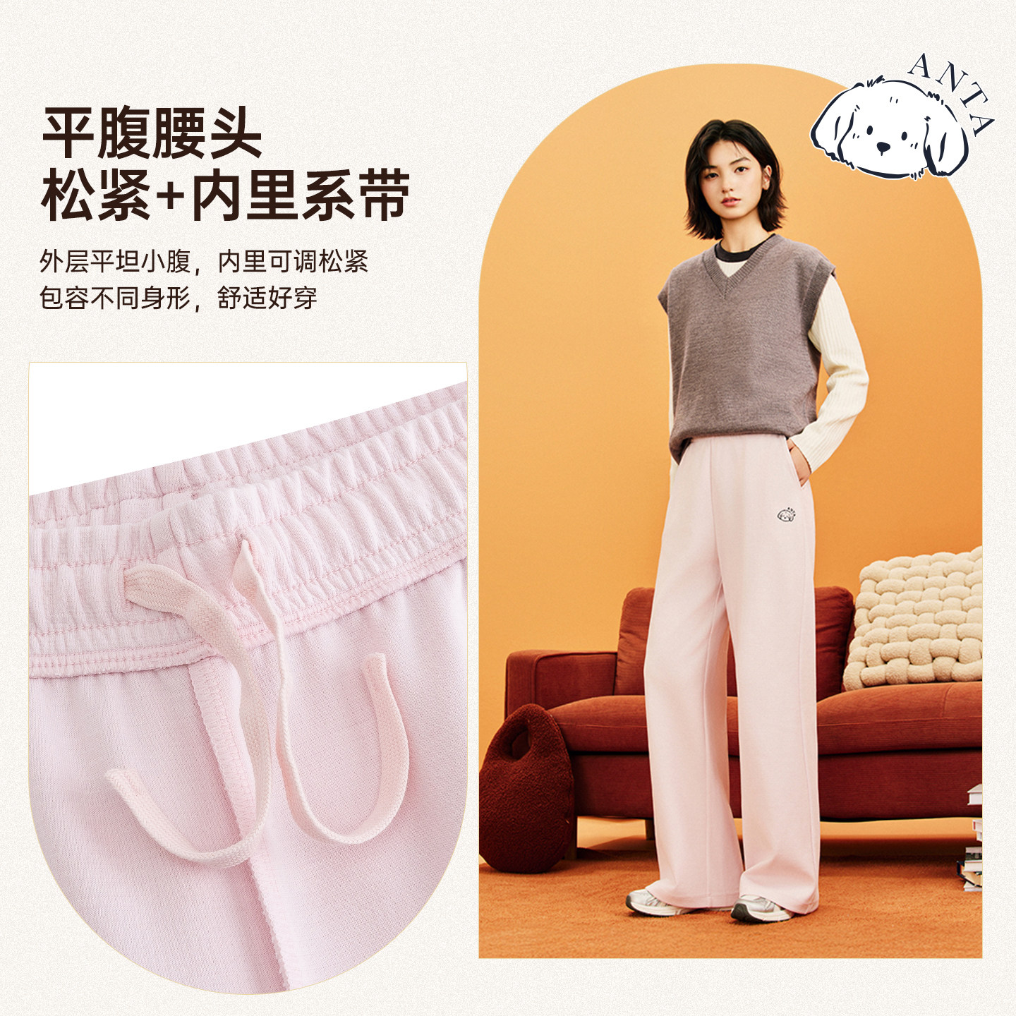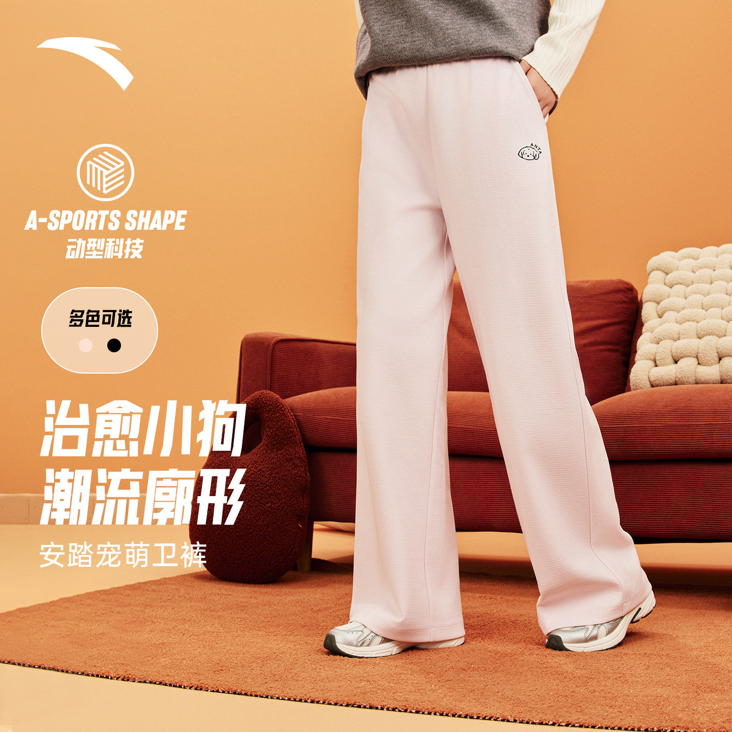 安踏萌宠卫裤丨新年休闲长裤女显瘦高腰直筒裤刺绣宽松加厚运动裤