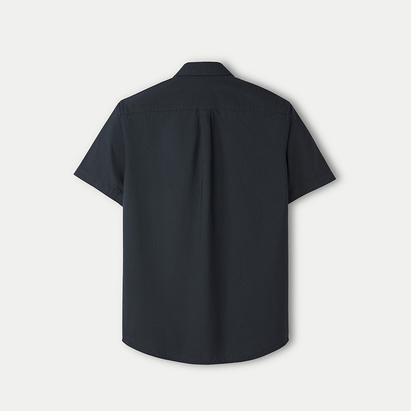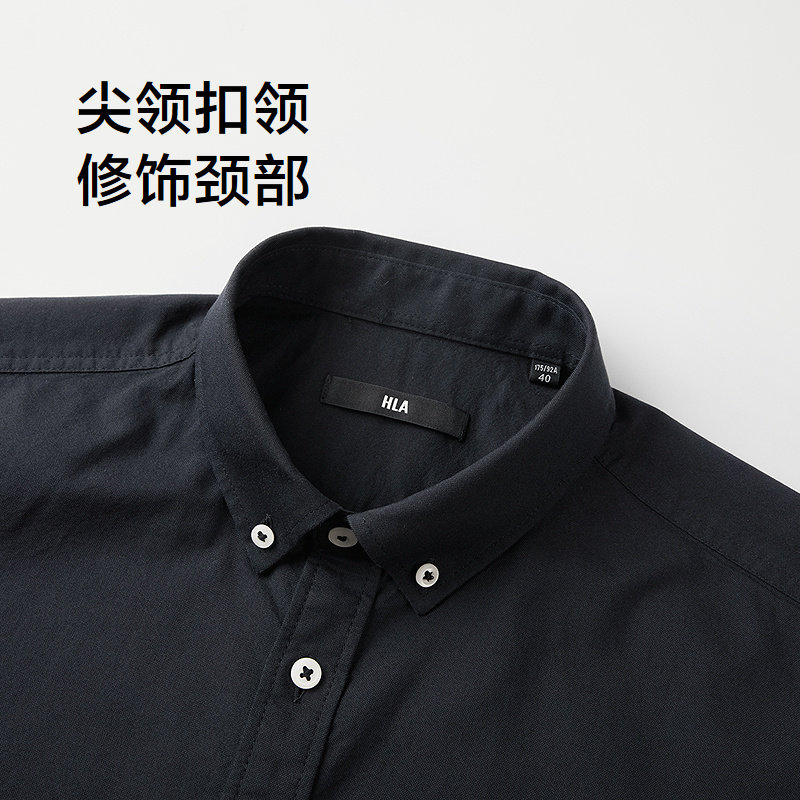 HLA/海澜之家纯棉质地短袖衬衫春夏牛津纺扣领尖领刺绣衬衣男