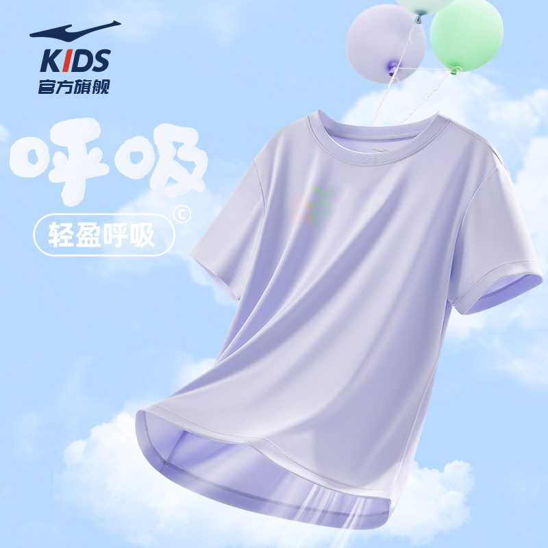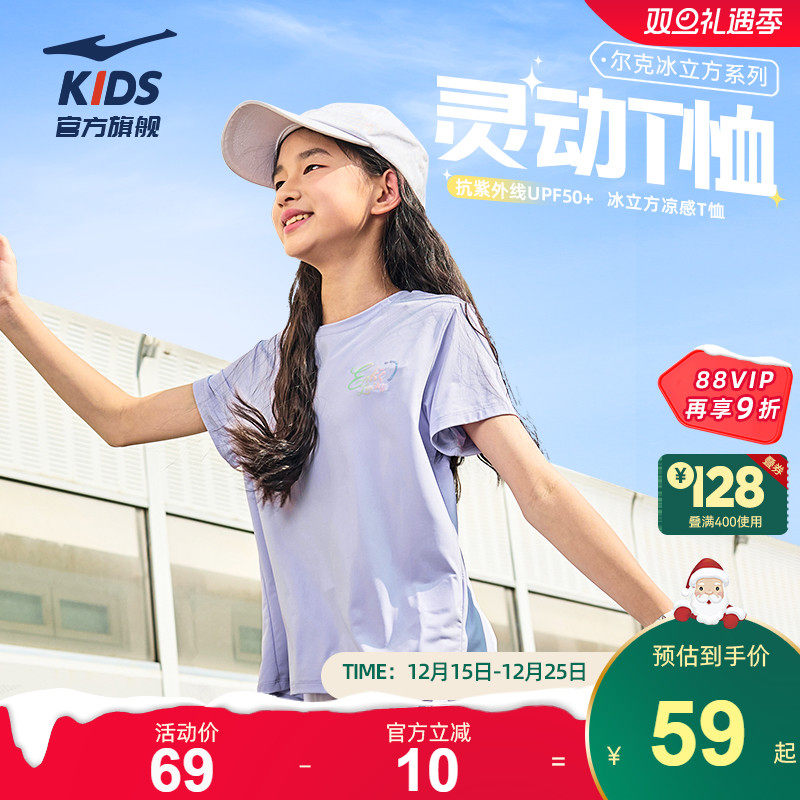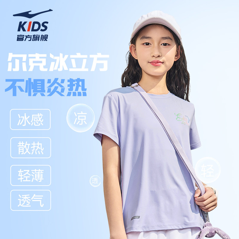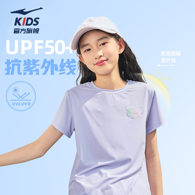 鸿星尔克童装儿童短袖夏季抗uv紫外线防晒上衣冰感速干衣女童T恤