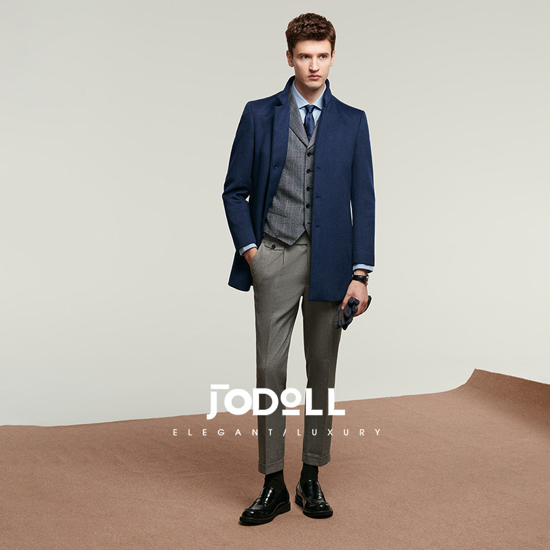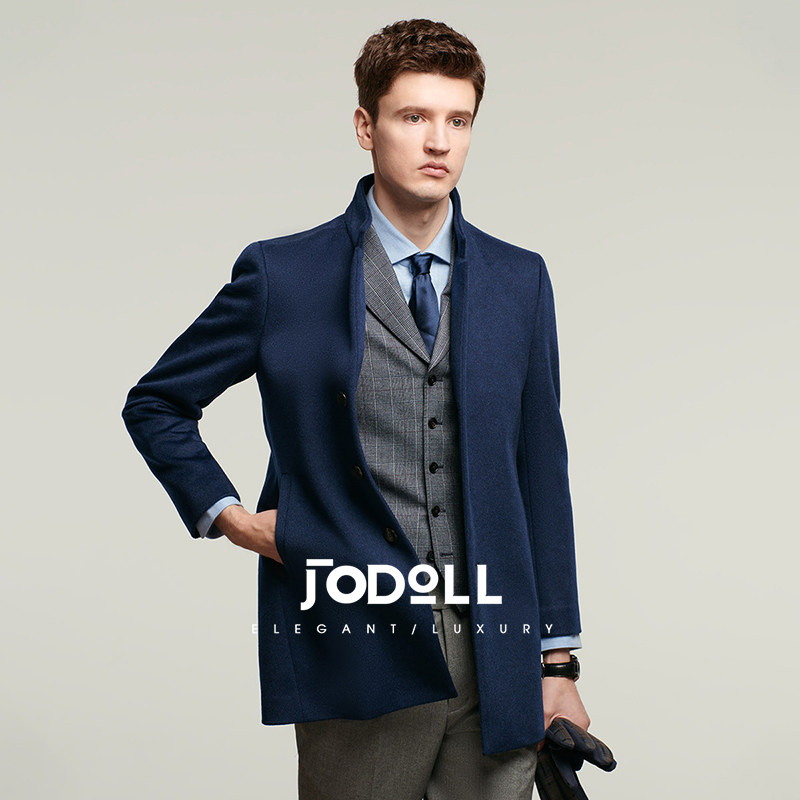 JODOLL乔顿男士商务休闲羊毛大衣冬季中长款立领保暖舒适毛呢外套