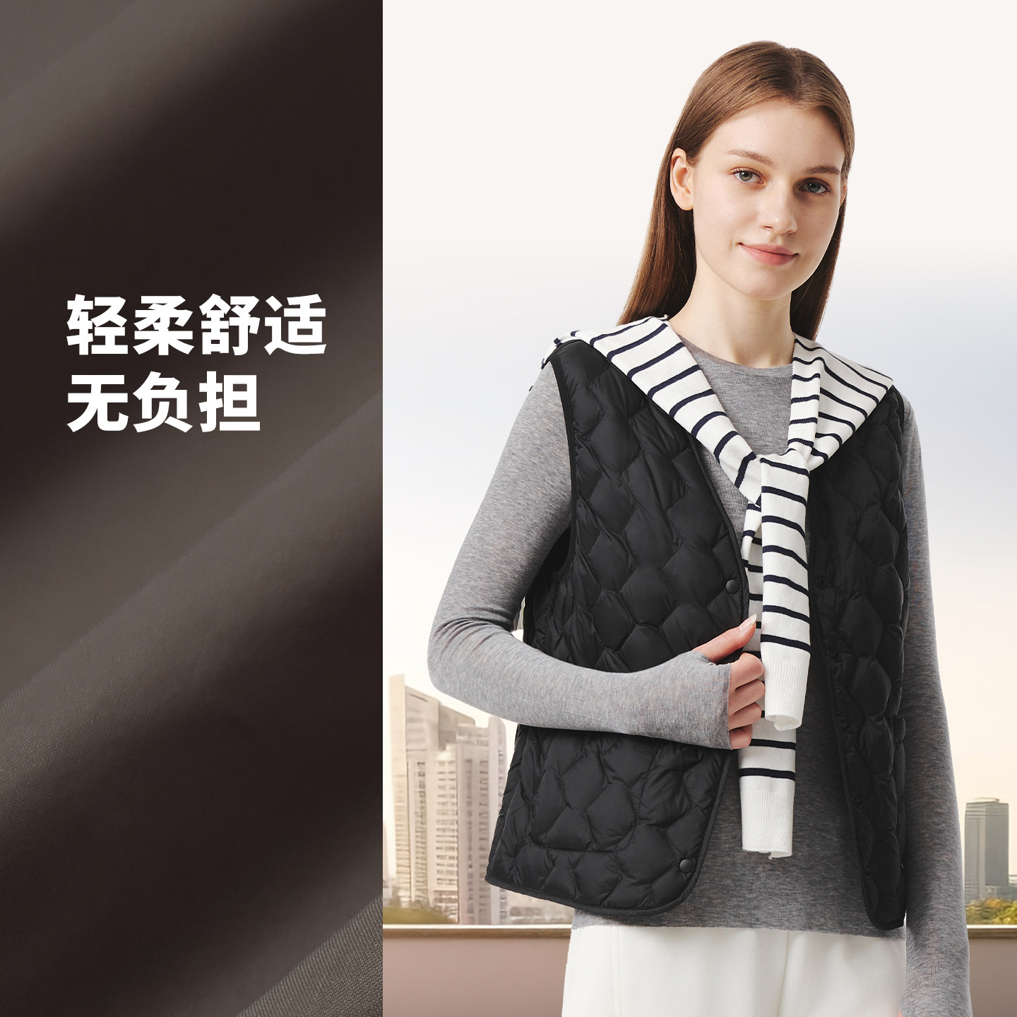 鸭鸭轻薄羽绒服马甲女秋冬季V领基础修身背心内胆鸭绒马夹短外套
