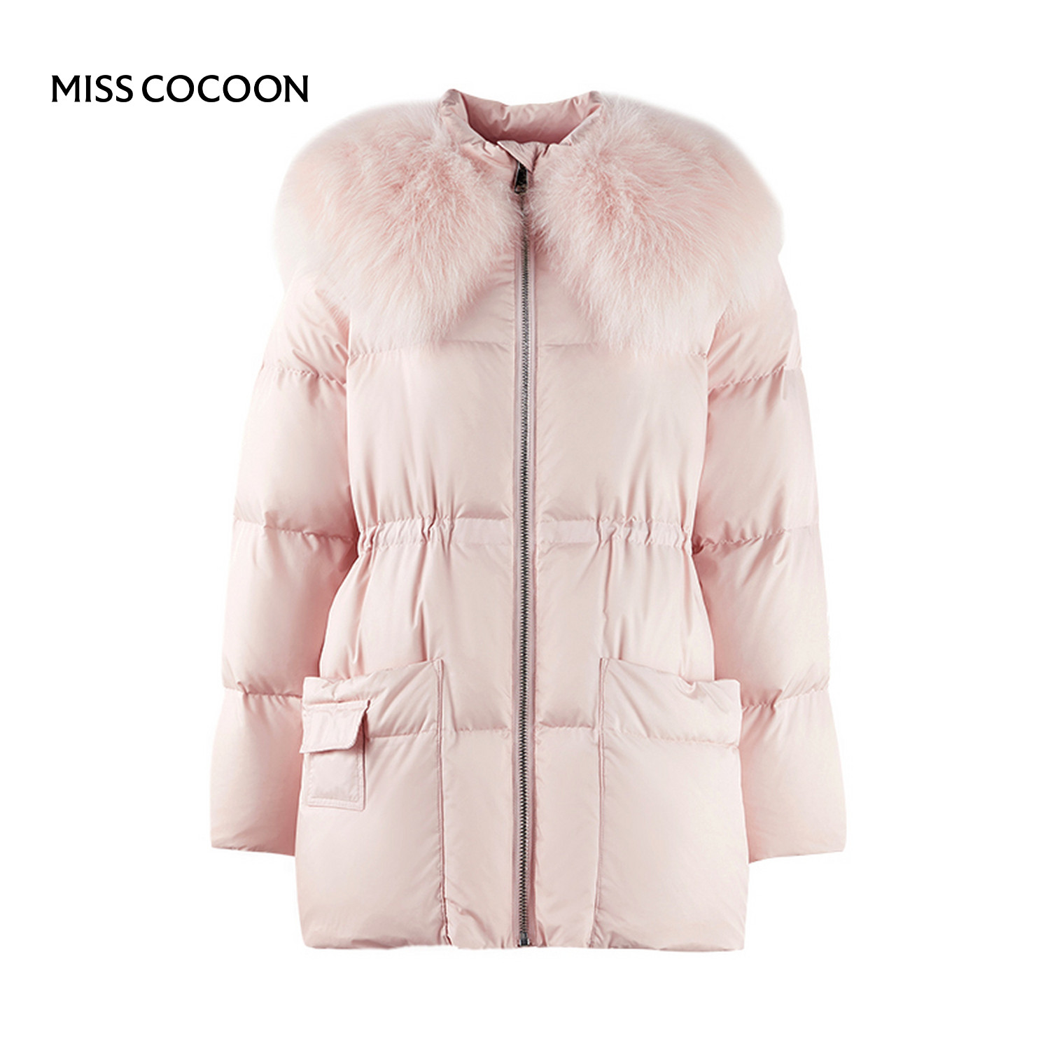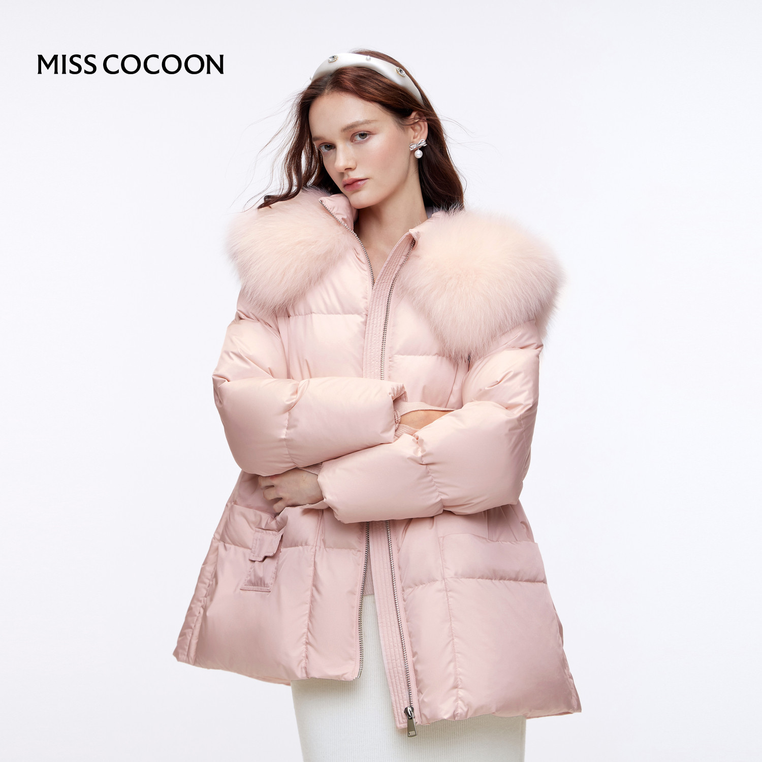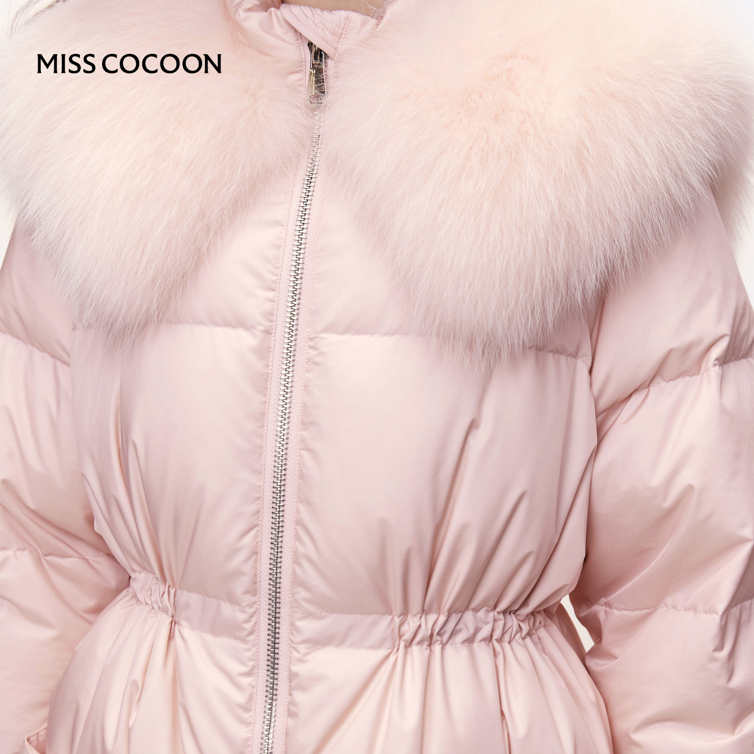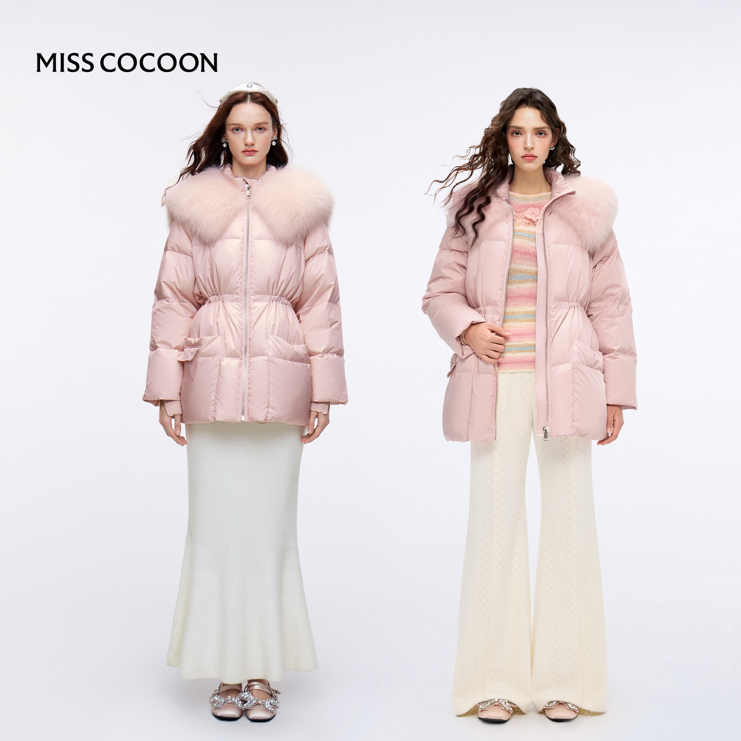 MISSCOCOON可可尼狐狸毛领粉色外套女2025冬新款中长款鸭绒羽绒服