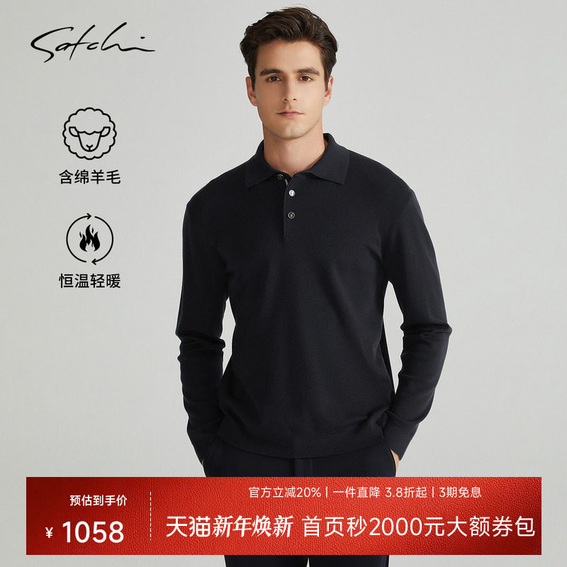 [黄金羊毛]SATCHI沙驰男装男士针织长袖POLO衫冬季新款针织毛衣厚