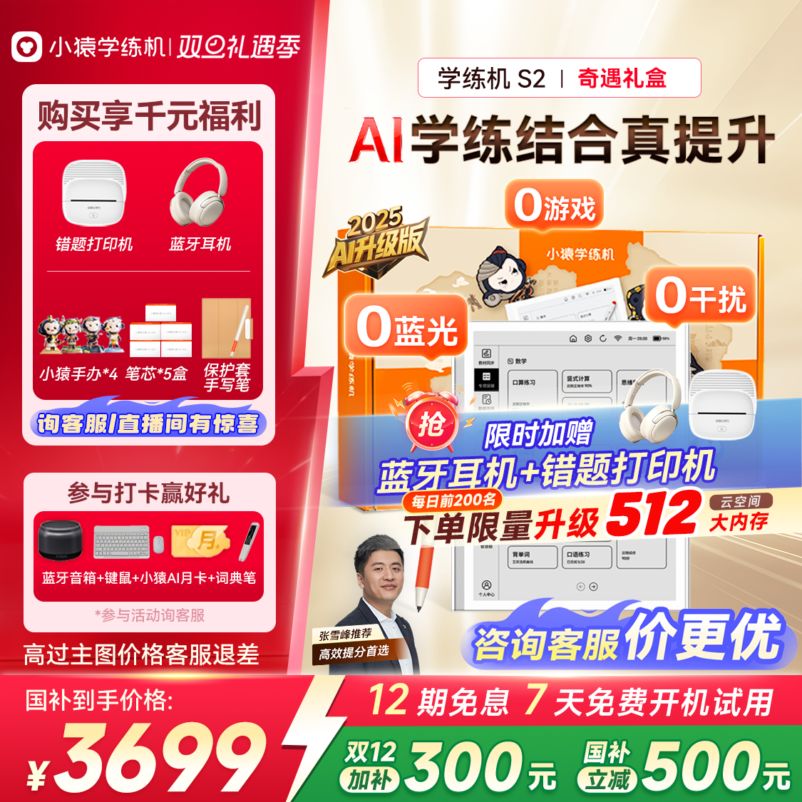 【直播/询客服更优惠 国补500】小猿学练机S2奇遇礼盒猿辅导AI学习机墨水屏护眼学生平板小初高教材同步英语