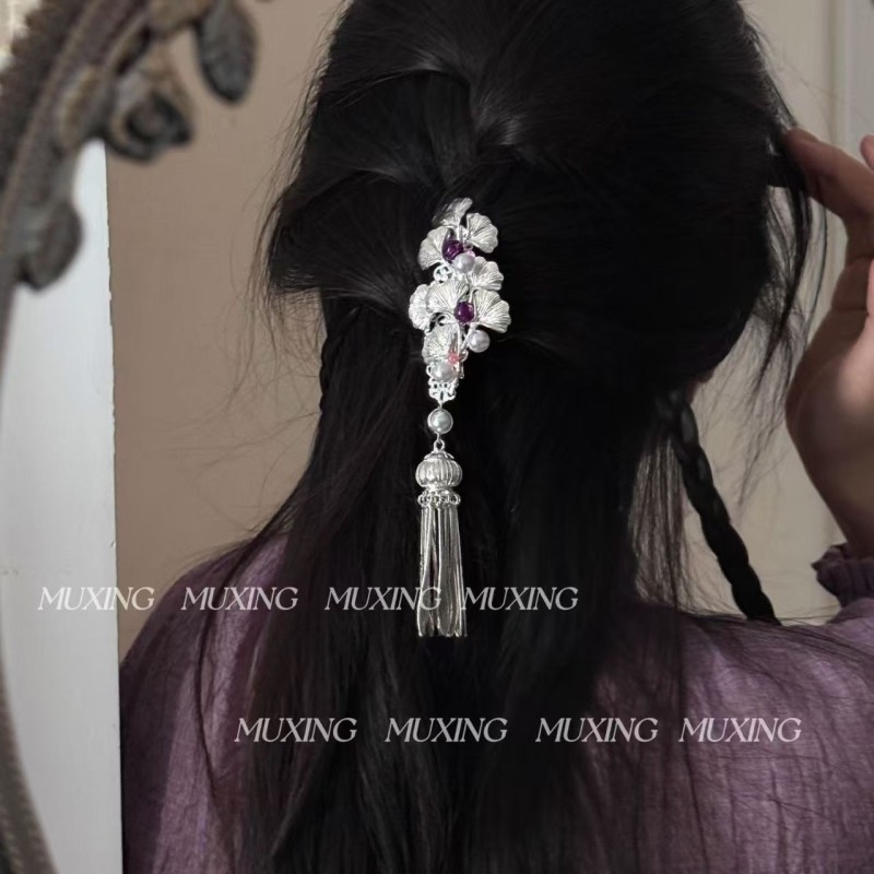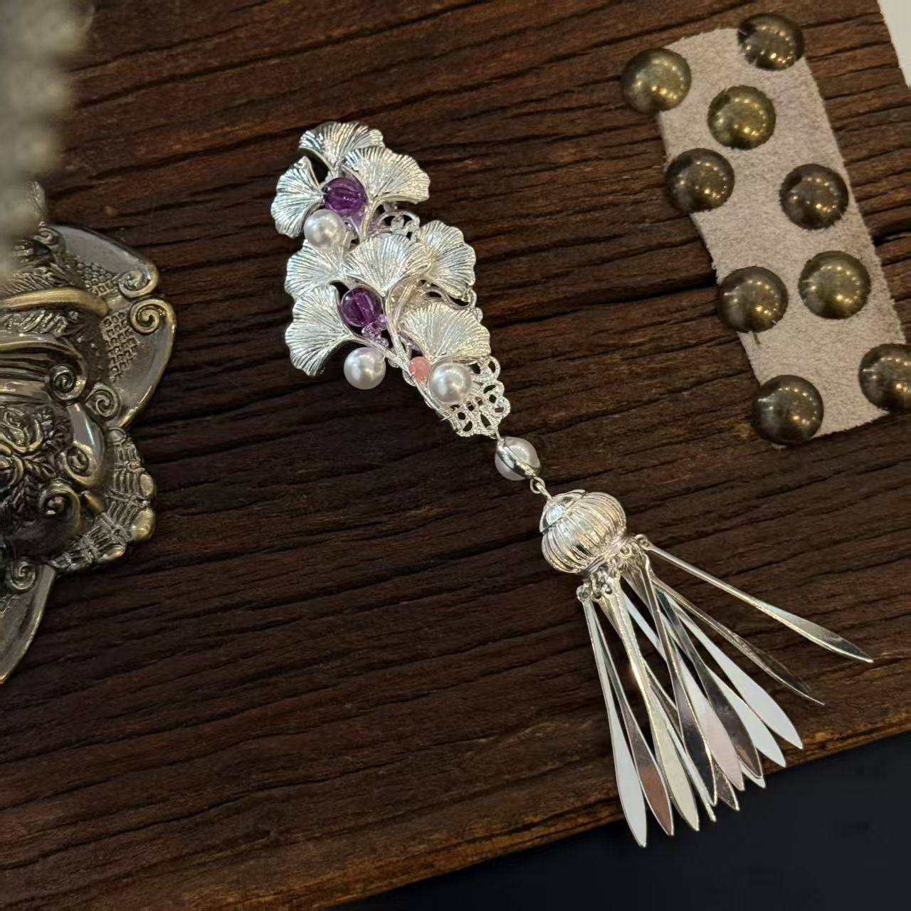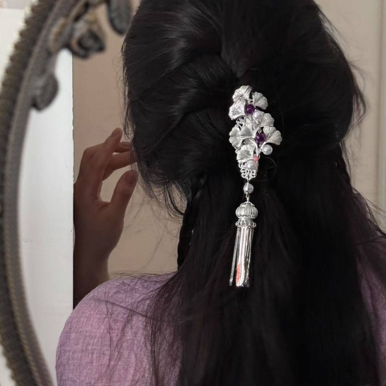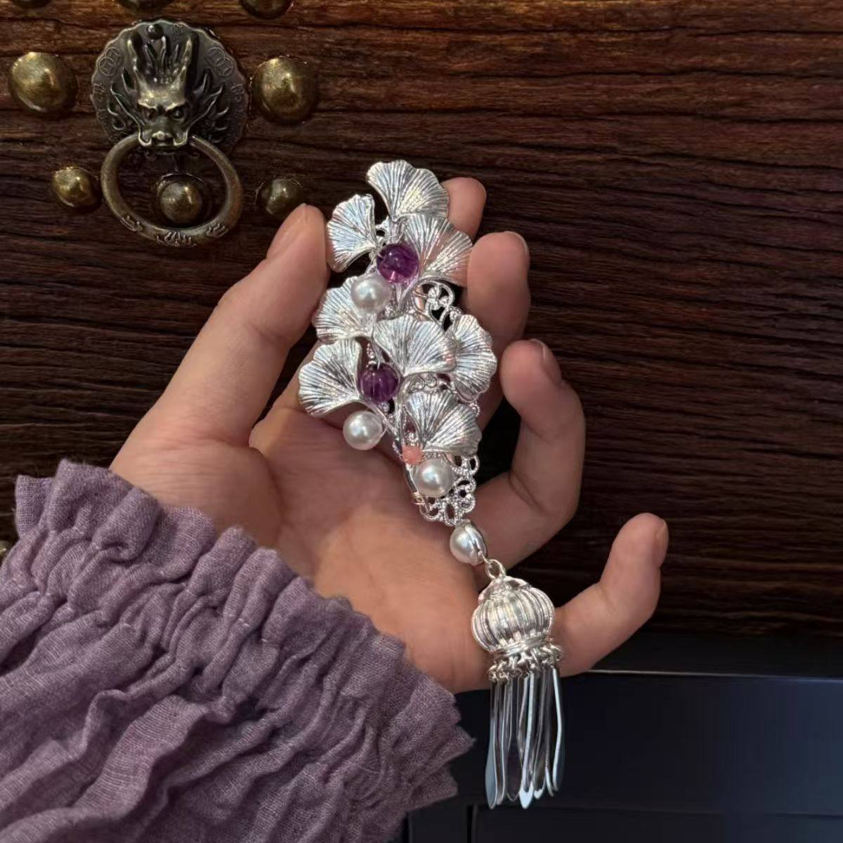 银杏新中式民族风古风精致仙气清冷感重工汉服小众发夹发饰流苏