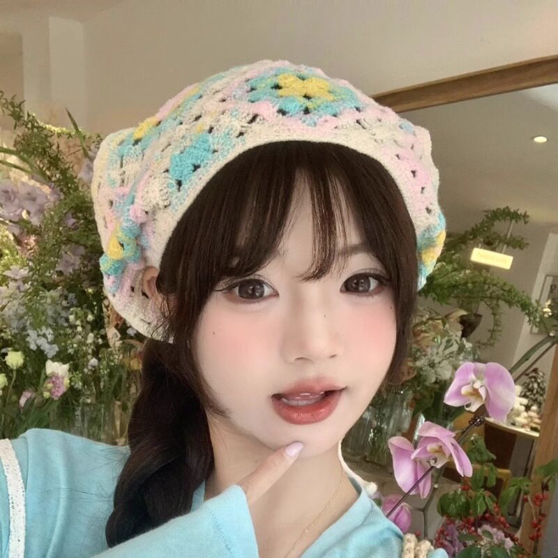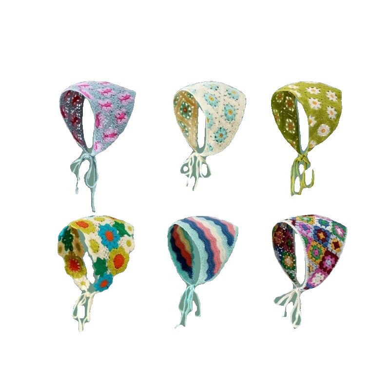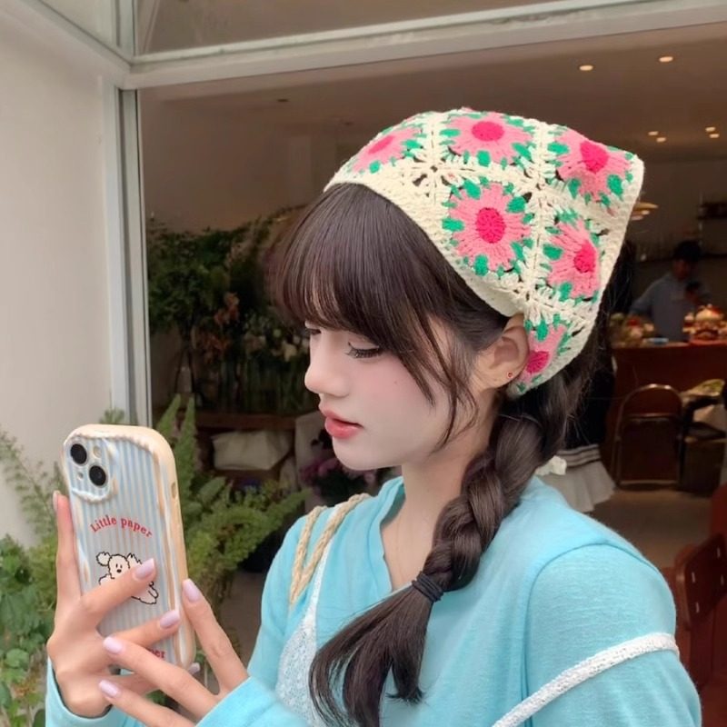 法式复古三角巾甜妹出游甜美可爱针织头巾钩花出图发饰雏菊花朵