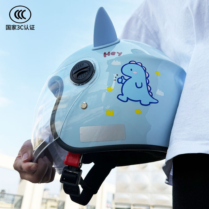 新国标3C儿童冬季保暖头盔电动车男女孩小恐龙幼儿园四季安全帽小