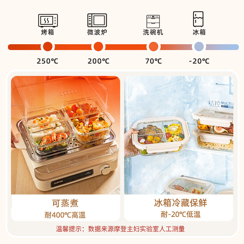 摩登主妇玻璃饭盒微波炉加热专用保鲜盒分格便当盒上班族带饭餐盒