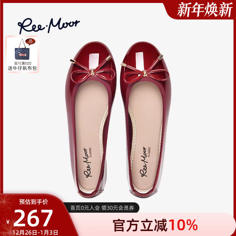 REEMOOR睿慕小红鞋浅口软底蛋卷鞋平底鞋单鞋瓢鞋婚鞋芭蕾鞋女