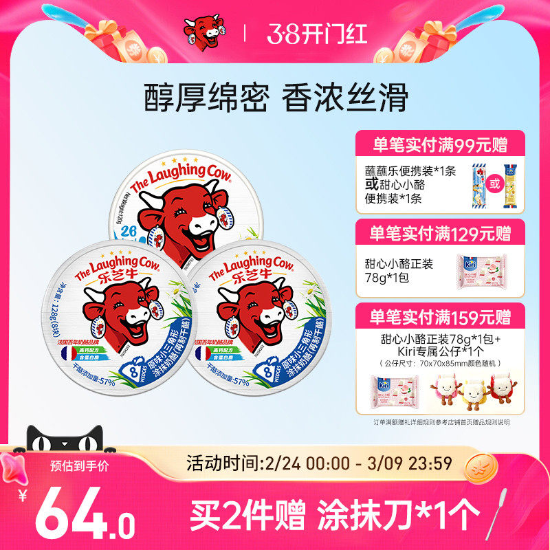 乐芝牛小三角奶酪块营养早餐面包涂抹乳酪芝士儿童即食零食120g*3