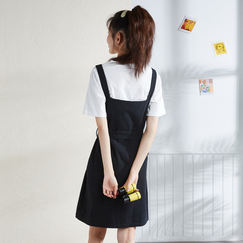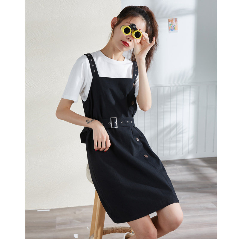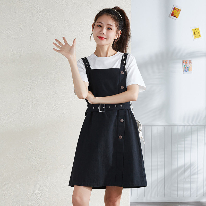 半练带胸垫裙子吊带裙白色连衣裙秋季流行长裙小个子黑色背心裙女