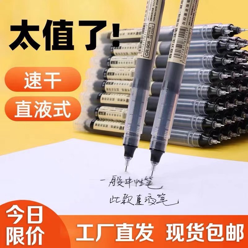 晨光直液式中性笔黑色走珠笔【12支】速干学生用水笔0.5考试专用水性直液笔签字笔红笔刷题作业神器碳素黑笔