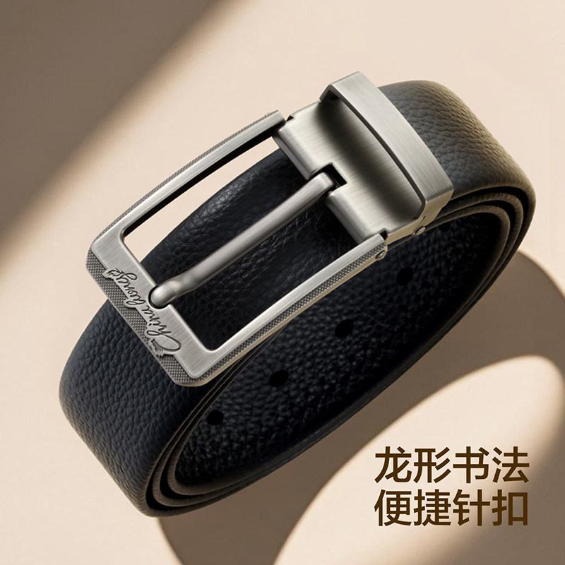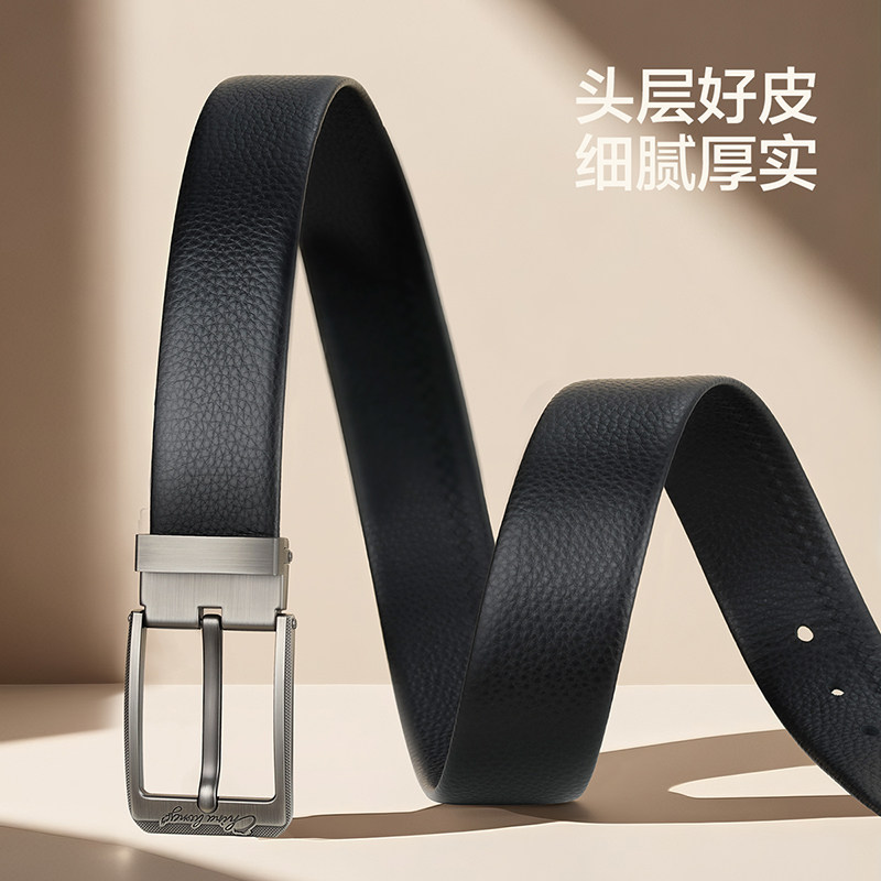纯牛皮皮带男真皮休闲裤带男牛皮带年轻人针扣牛仔中年腰带男青年