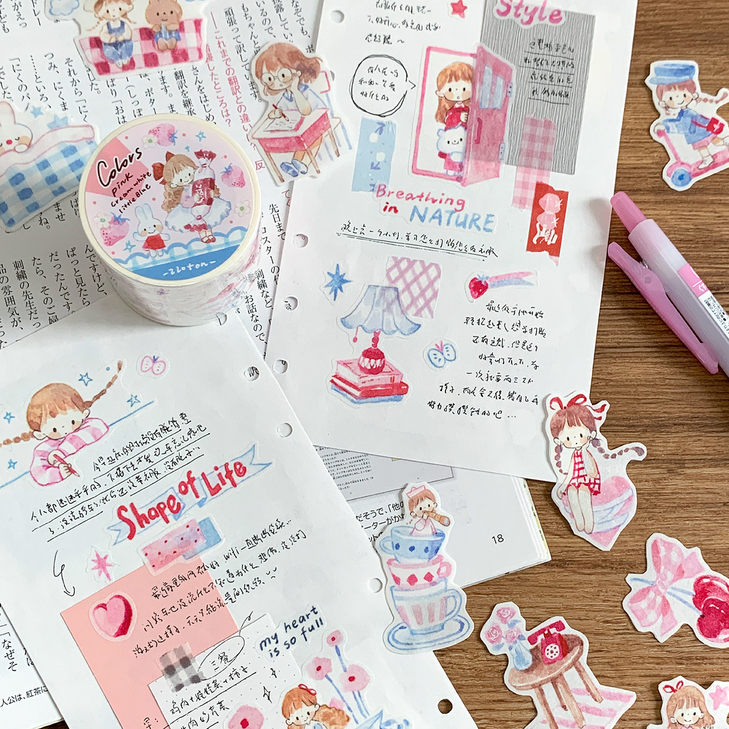 卓大王胶带模切阿卓配色系列莓红奶油盐蓝拼贴手帐素材手绘贴纸