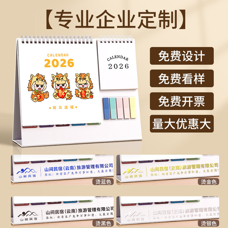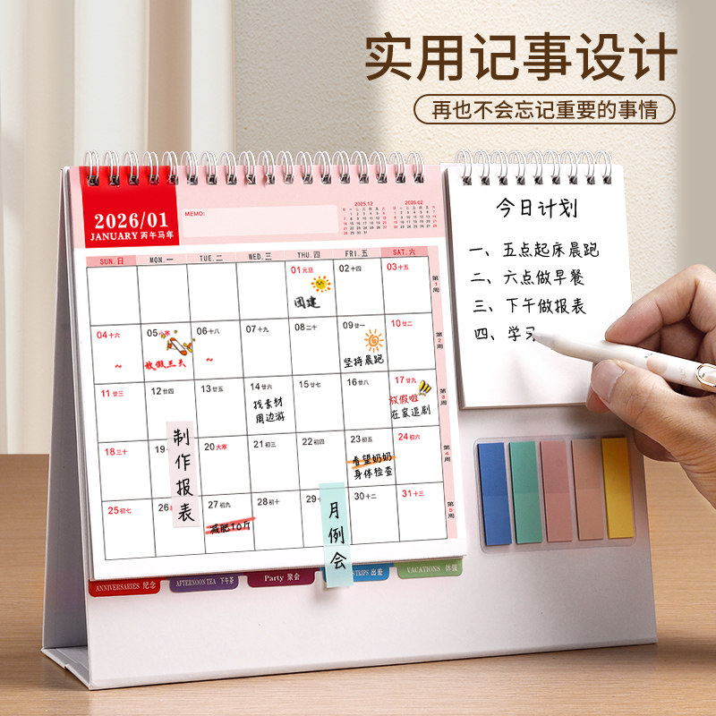 台历2026年新款日历定制logo创意简约小清新韩式办公年历个性中国风桌面摆件商务工作记事计划本订制广告月历