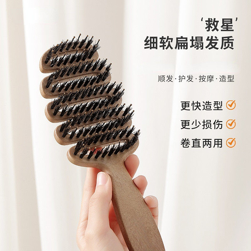 松塔梳子猪鬃护发梳发顶蓬松神器按摩顺发排骨梳女士专用防静电